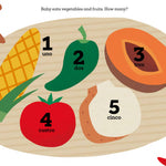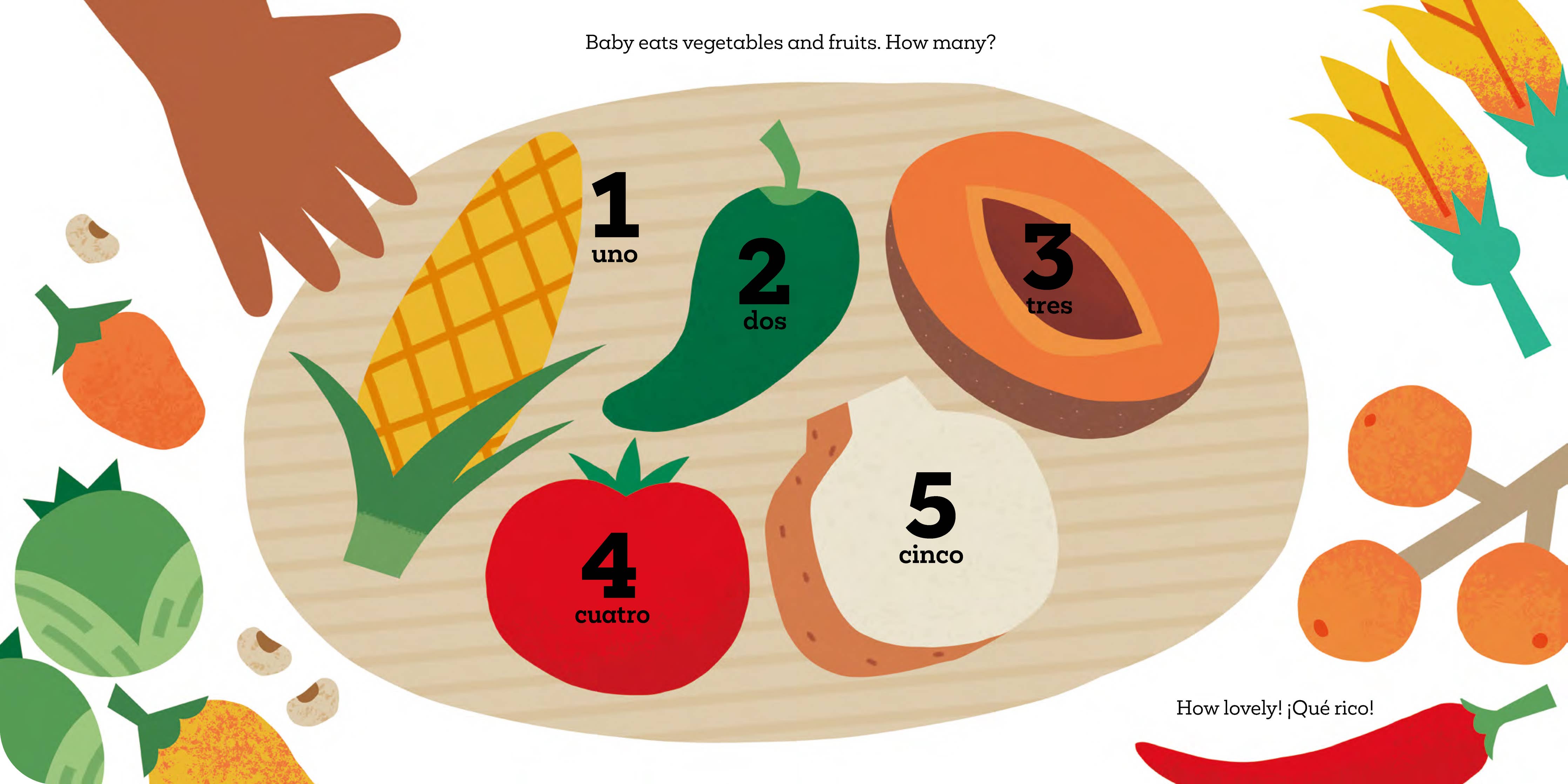Baby Go! Mexico explores colors, shapes, sounds and sensory experiences through travel. From counting vegetables to napping on a boat at Xochimilco to watching monarch butterflies take flight, baby discovers the local culture and traditions of Mexico. Baby eats vegetables. How many? 1 uno, 2 dos, 3 tres, 4 cuatro, 5 cinco. How lovely! ¡Qué rico! The Baby Go! series offers parents and young readers a fun and educational way to learn about the world. Baby, pack your bags and let’s go!