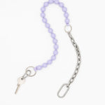 Chain with 16mm wooden beads, steel chain, metal ring, and two steel carabiners.