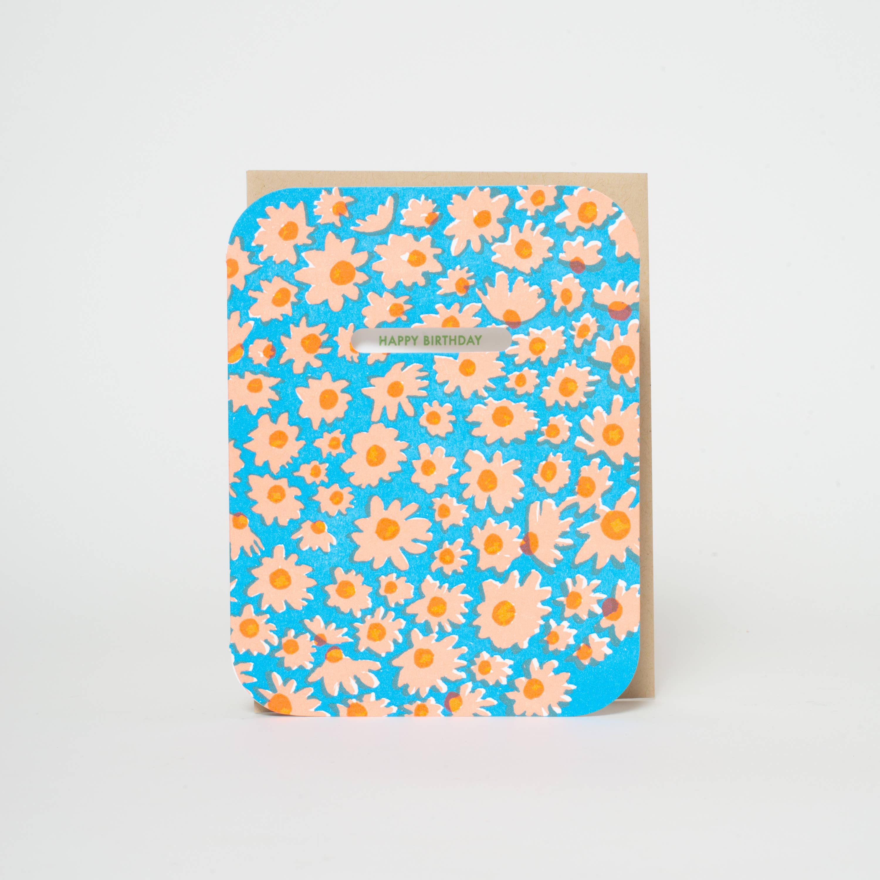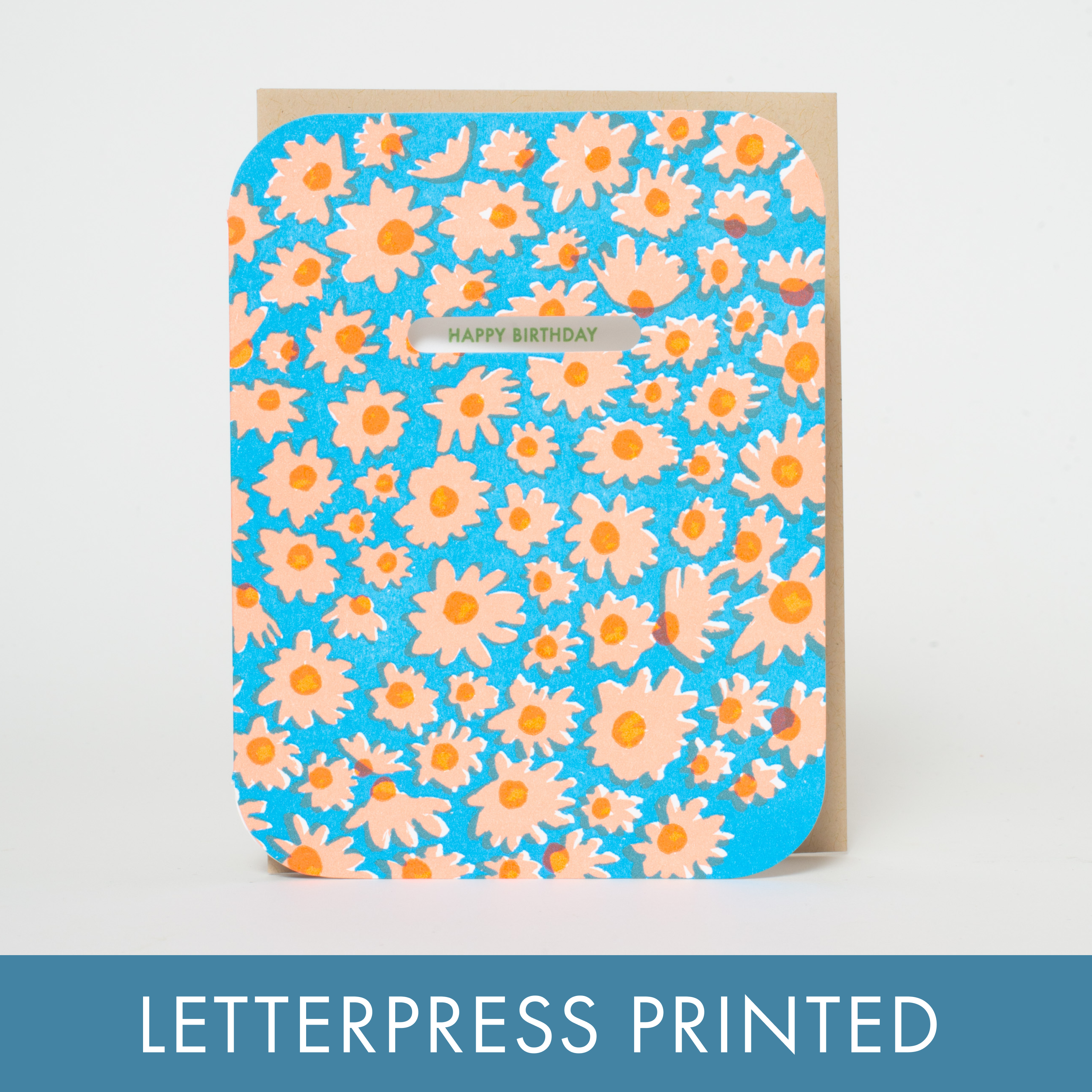 Birthday Daisy Patch Die-cut Letterpress Greeting Card by Egg Press: Plastic sleeve