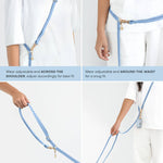 Wear it across your shoulder, around your waist, or in hand — whichever way fits your walk. The adjustable side lets you shorten or extend your reach and even doubles as a handy traffic handle when clipped closer.