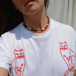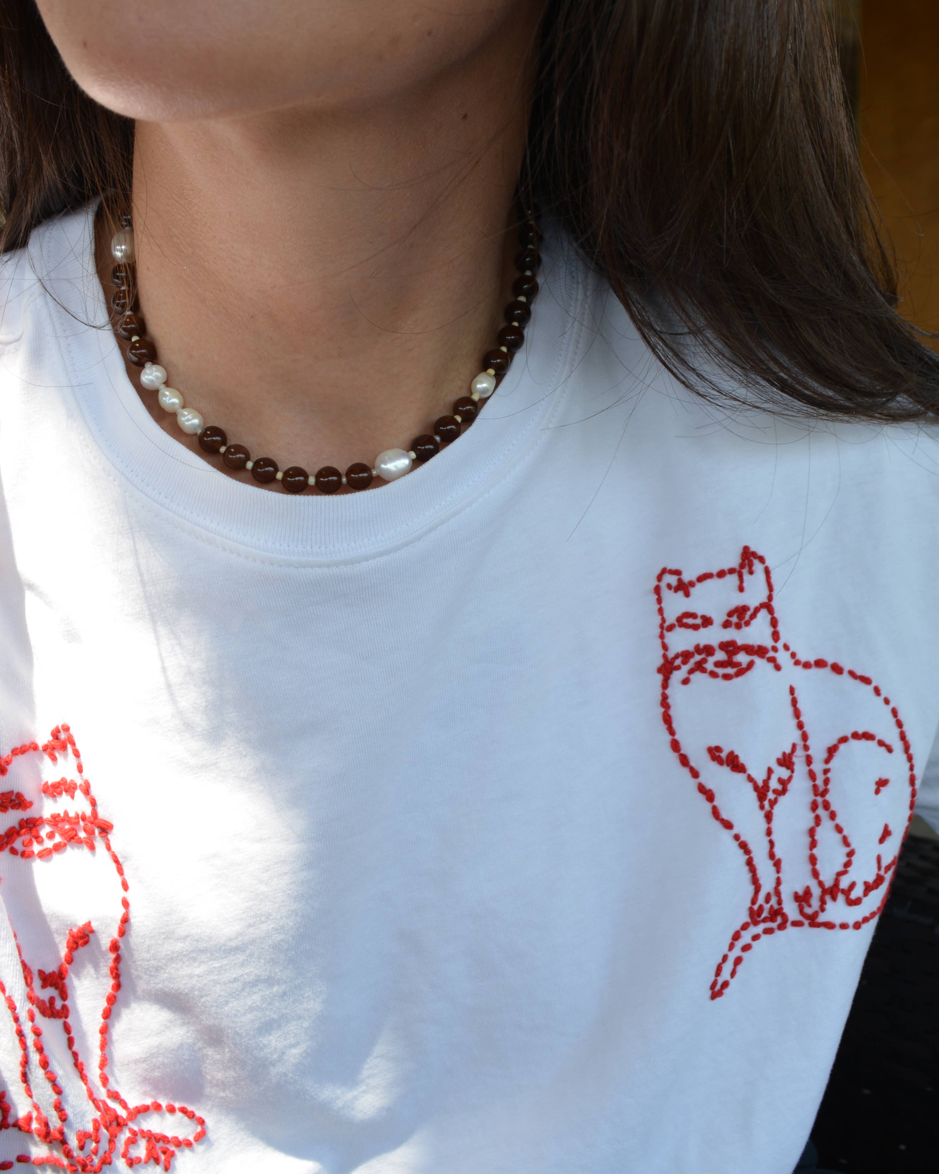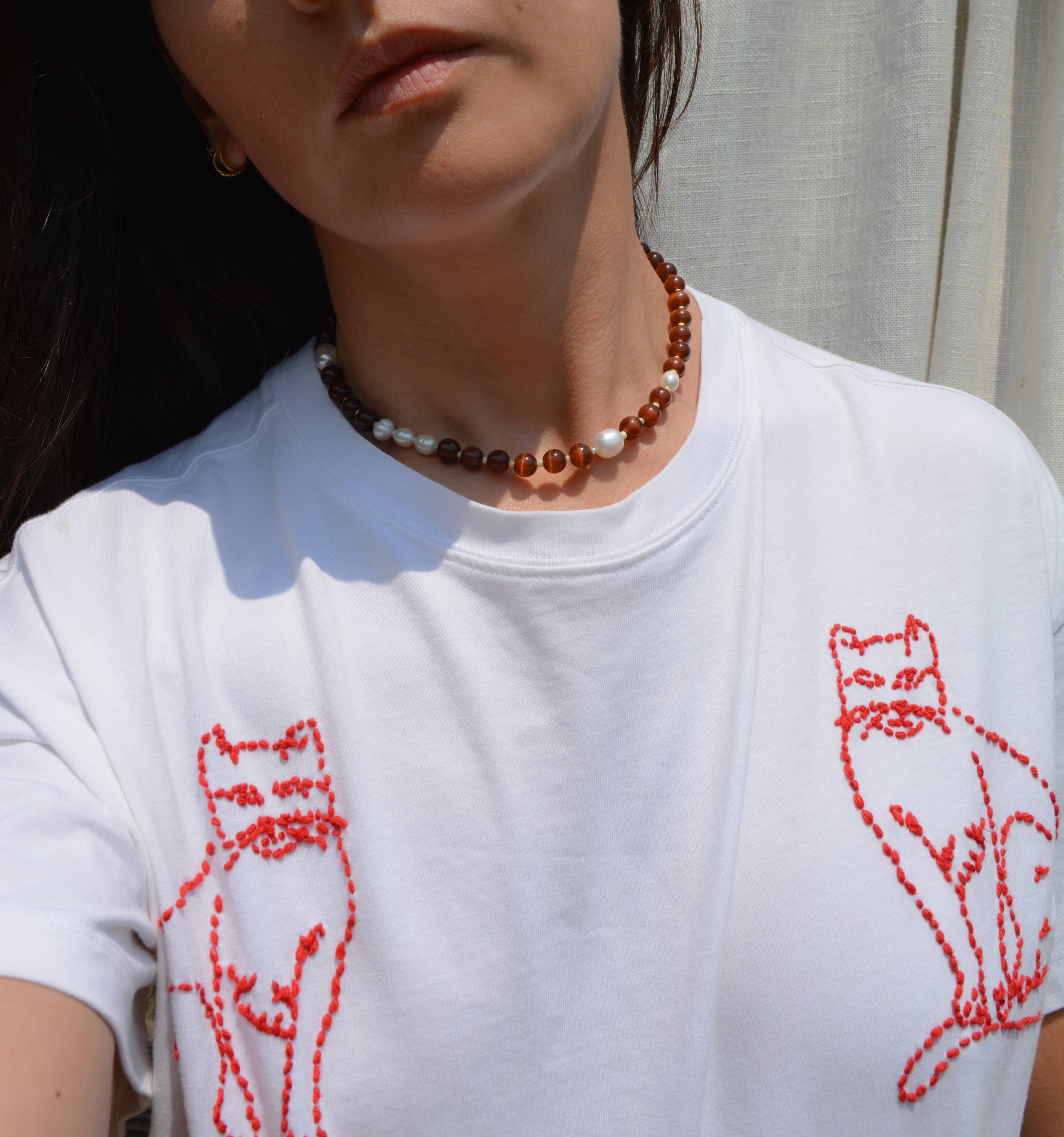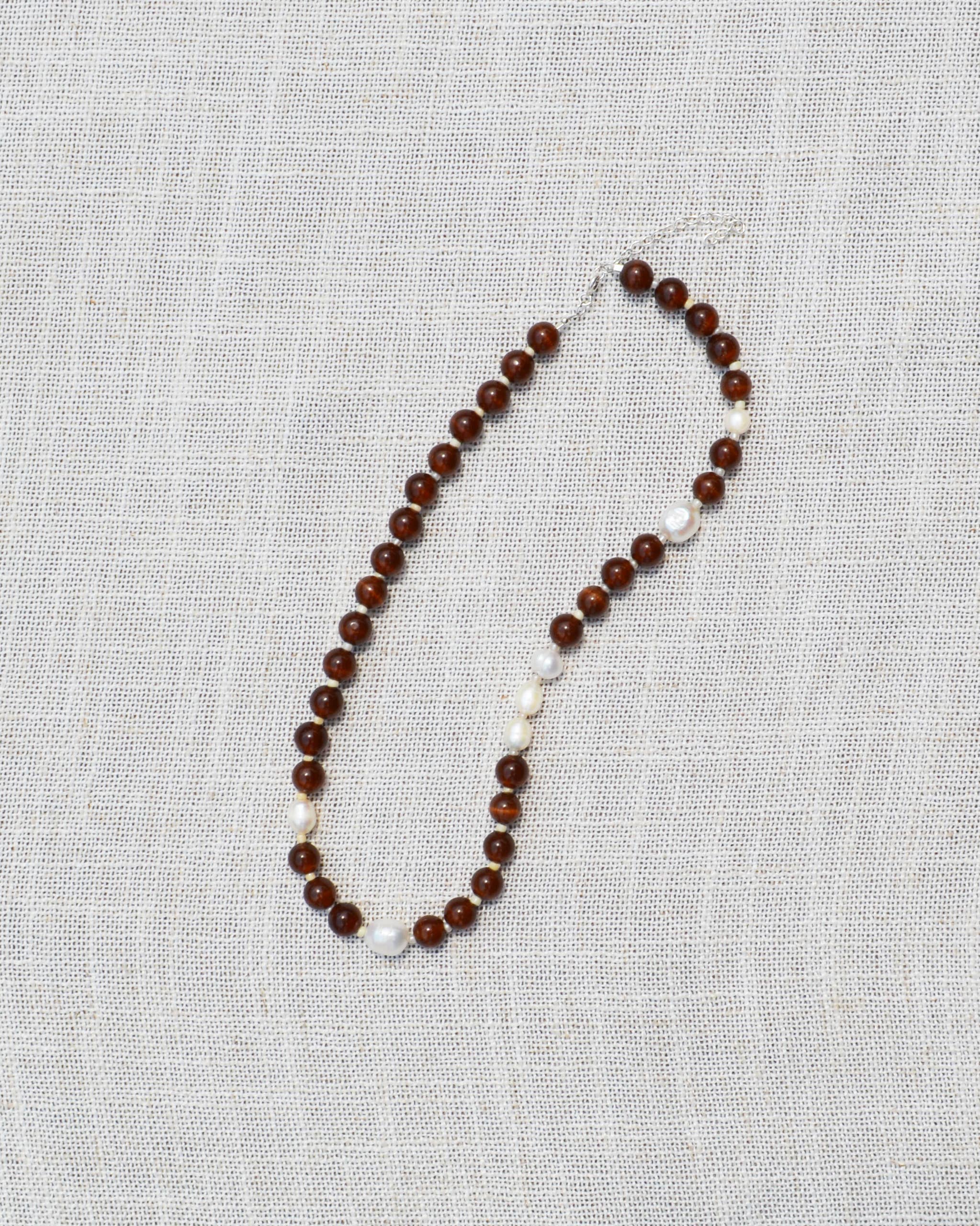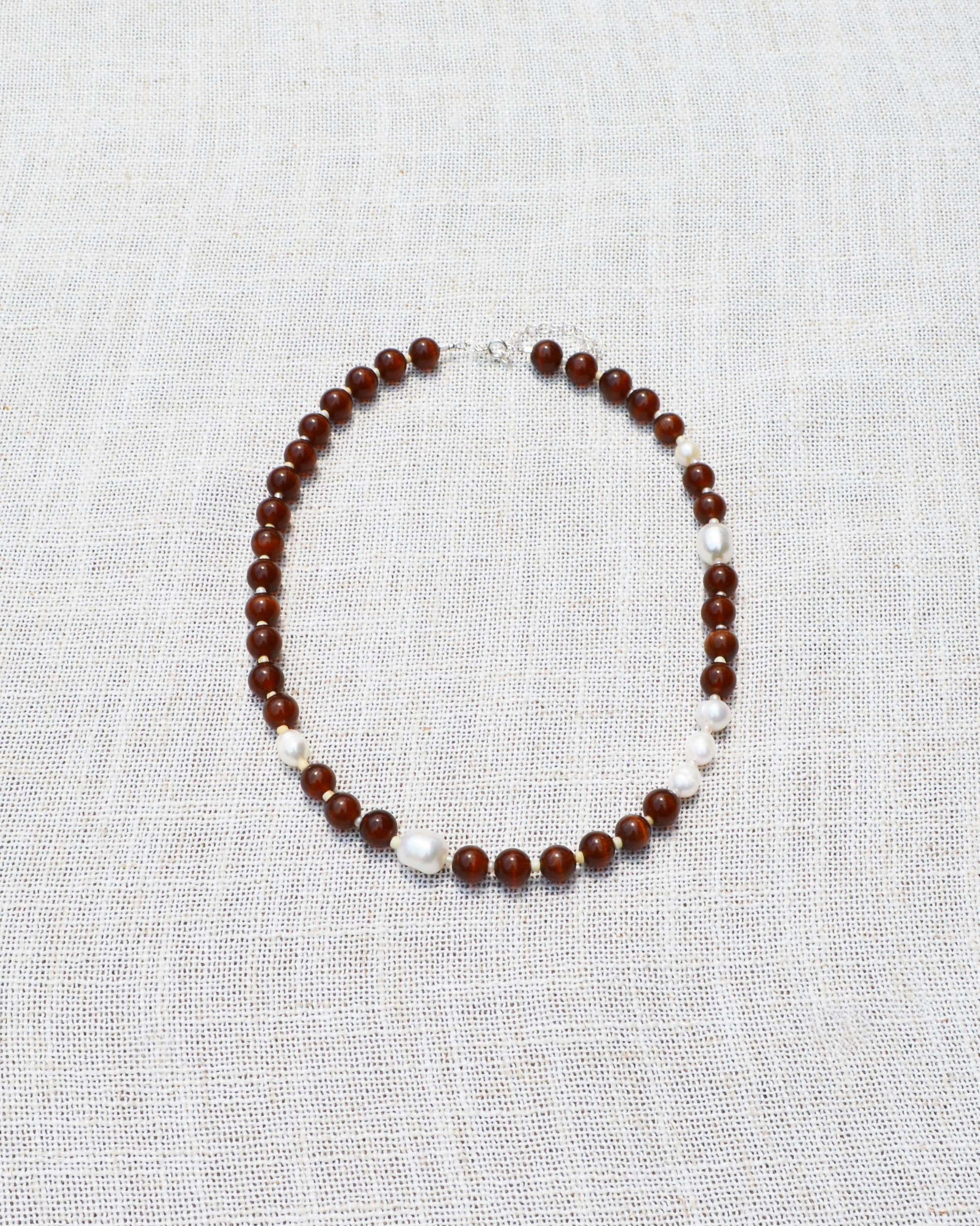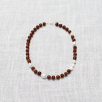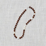 Coffee beads with freshwater pearl necklace - Czech glass, dark topaz beads - Czech glass spacer beads - Freshwater pearls - Clasp, & components solid sterling silver. - Available in 14.5" + 2" extension (pictured), or 16" + 2" extension