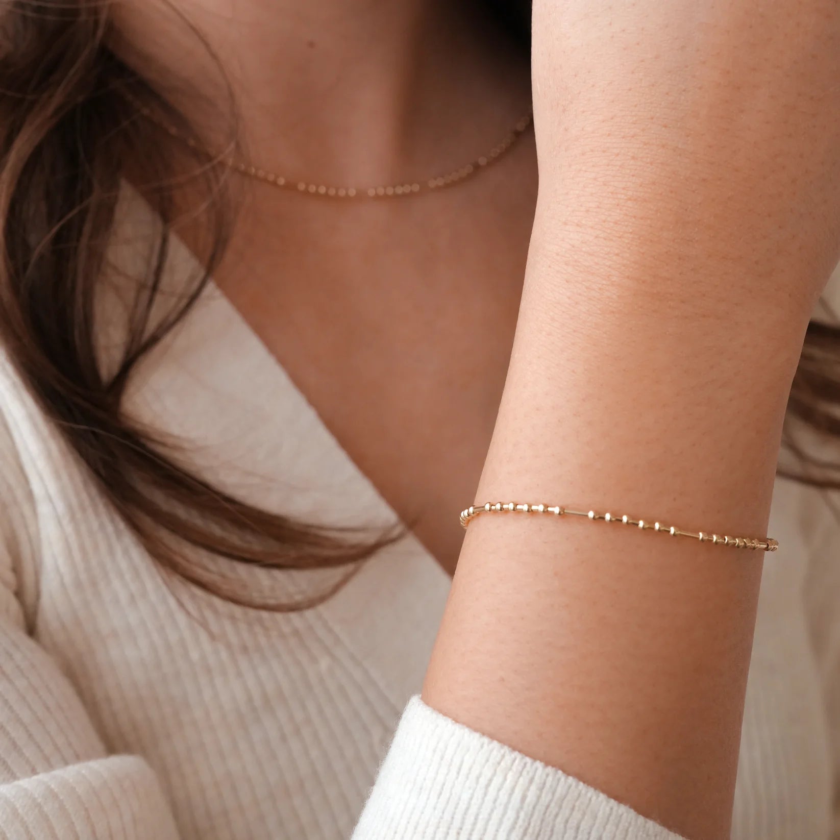 This dainty chain made with 14k gold-filled materials and findings can be worn daily, alone or as an anchor for a statement bracelet stack.