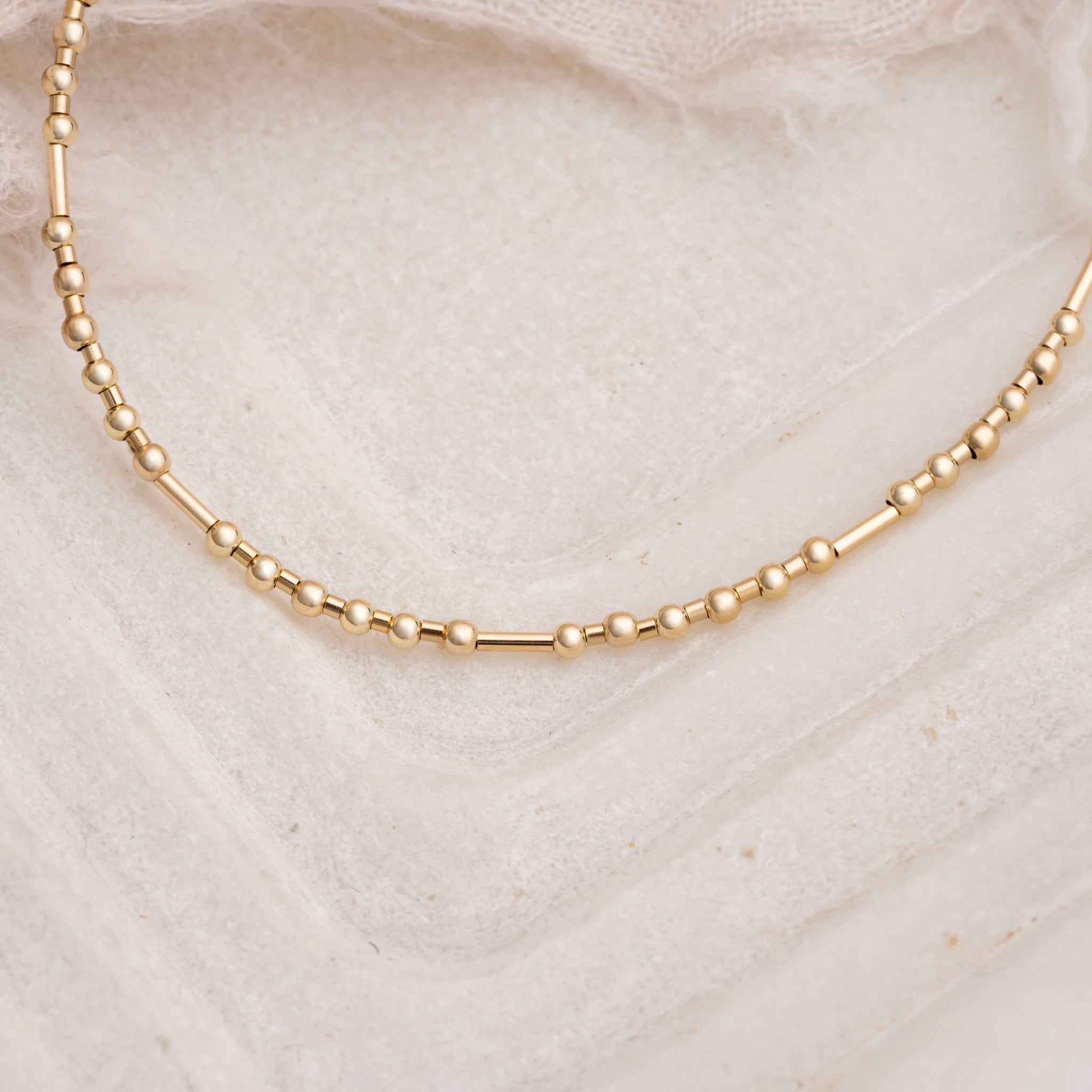This 17" dainty chain made with 14k gold-filled materials and findings can be worn daily, alone or as an anchor for a statement necklace stack.