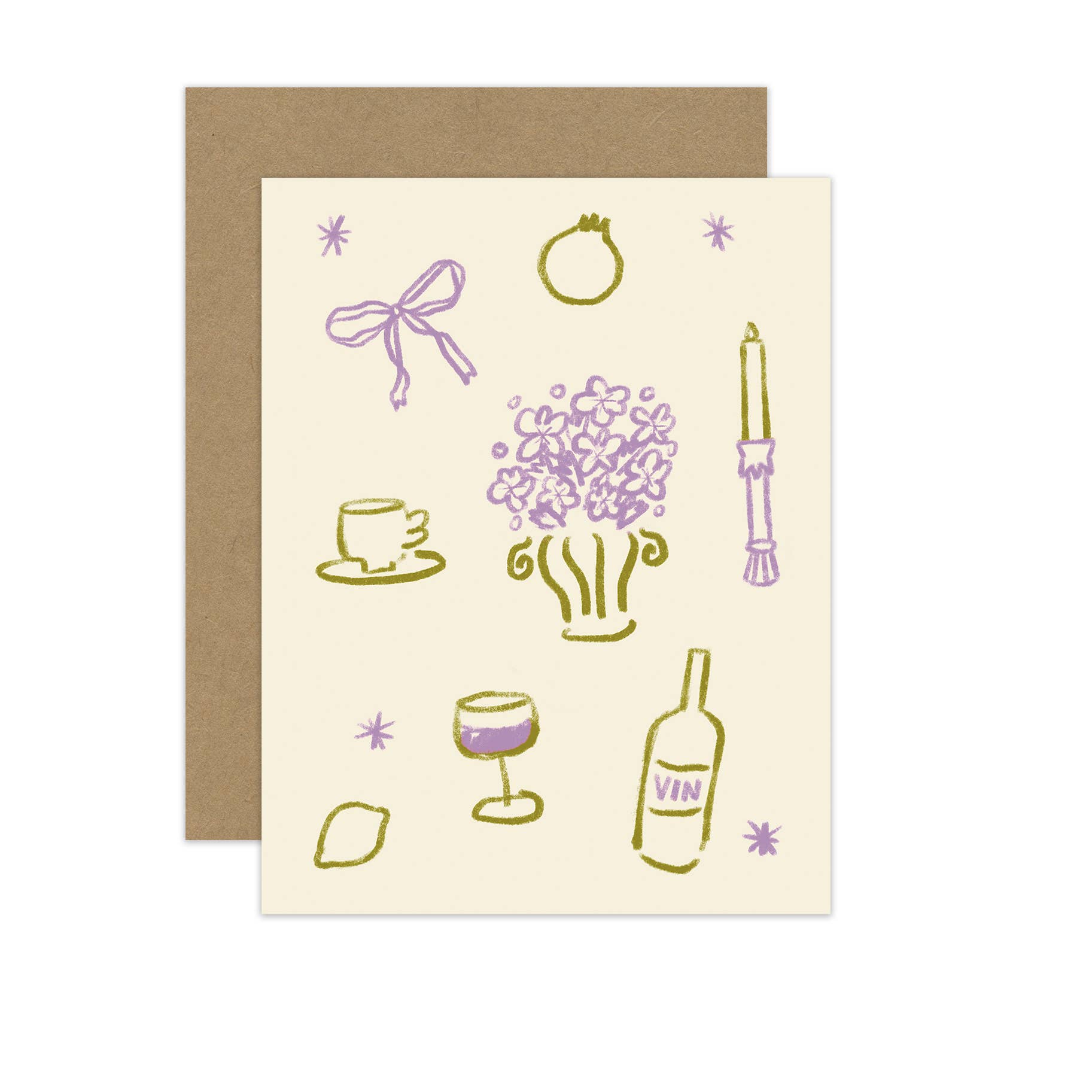 A2 (5.5 x 4.25") art card. Comes with a kraft envelope, and is blank inside. Packaged in an acid-free plastic sleeve. All art prints and greeting cards are designed, printed and packaged by hand in Allison's home studio.