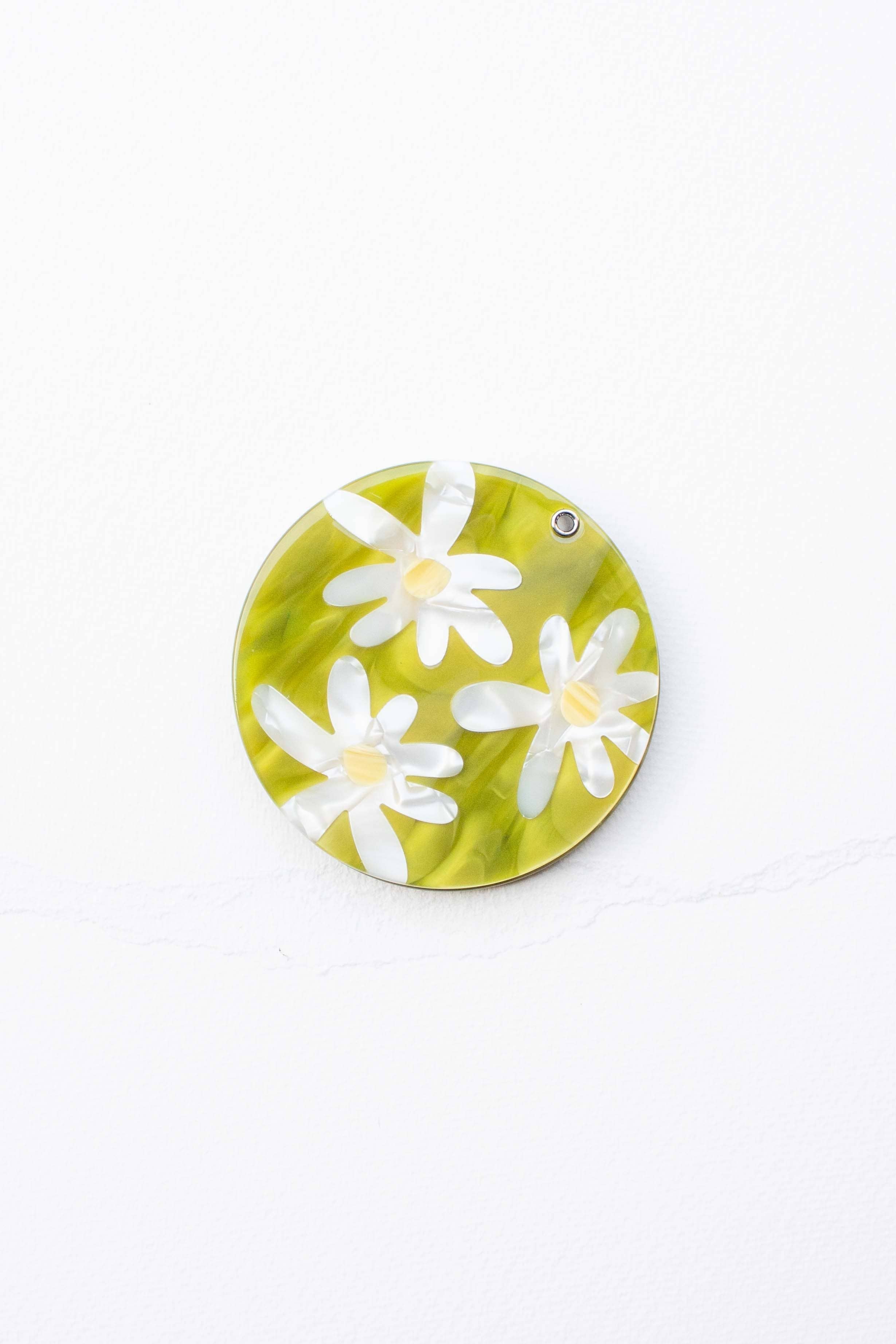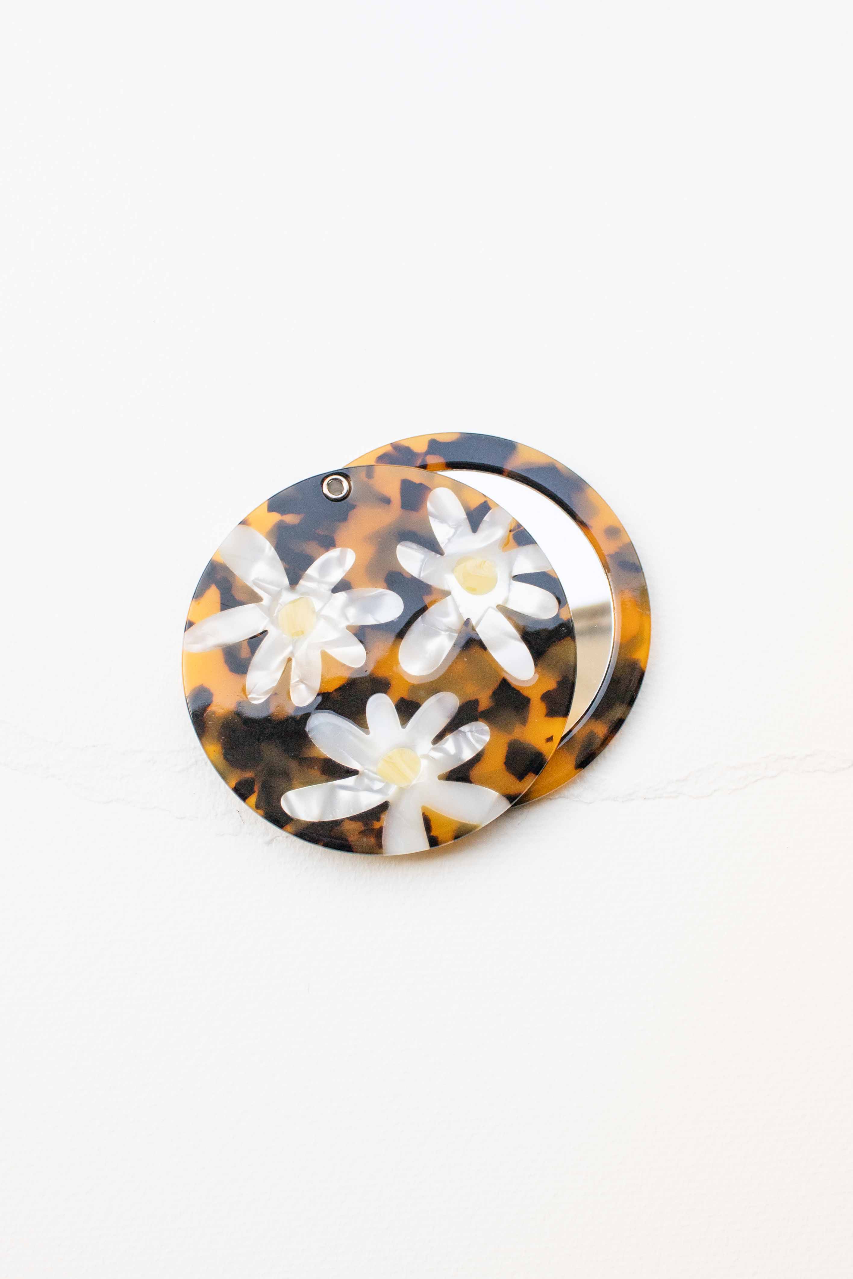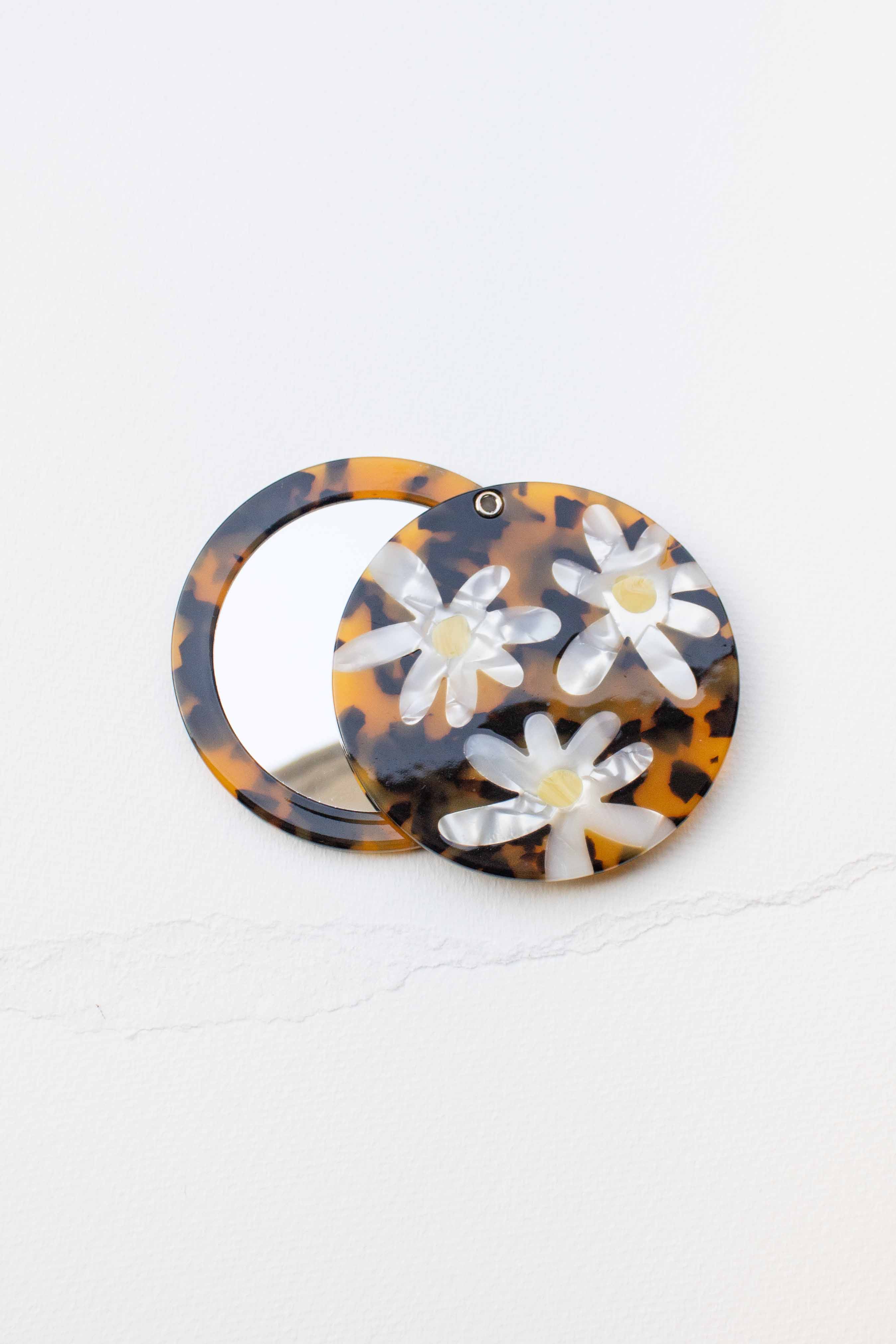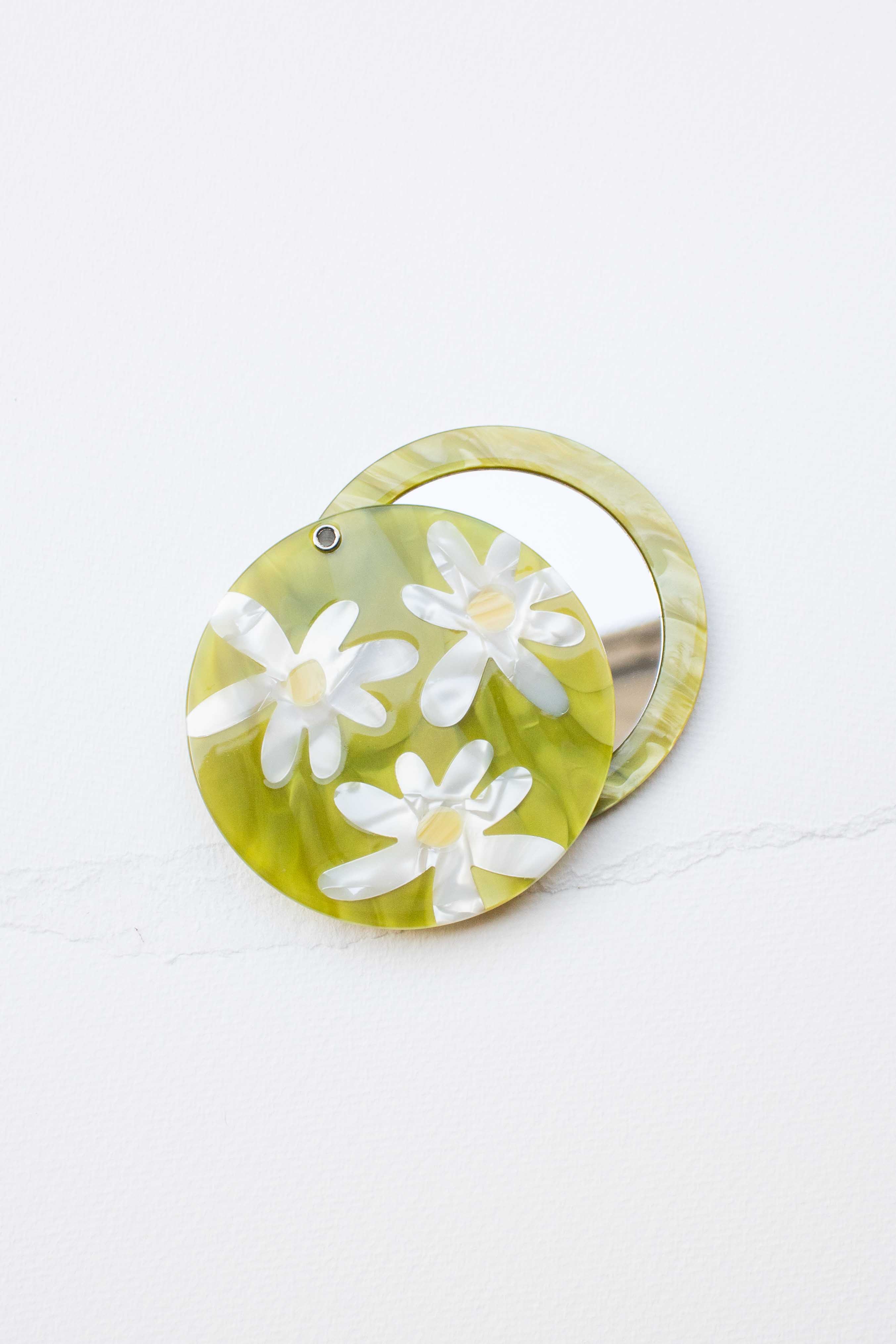 Brighten up your day with our Eco Acetate Daisy Compact Mirror, featuring a delightful daisy design embedded in sustainable, high-quality acetate. This portable round mirror is perfect for on-the-go touch-ups, slipping effortlessly into your handbag, pouch, or travel kit. Each piece is crafted with an eco-conscious acetate material that mimics the luxurious look of mother-of-pearl while being lightweight and durable. Material: Eco-friendly acetate Design: Embedded daisy floral motif with glossy finish Function: Slide-open compact mirror Diameter: Approx. 7.5 cm (3 inches) Perfect as a stylish accessory or a thoughtful gift!
