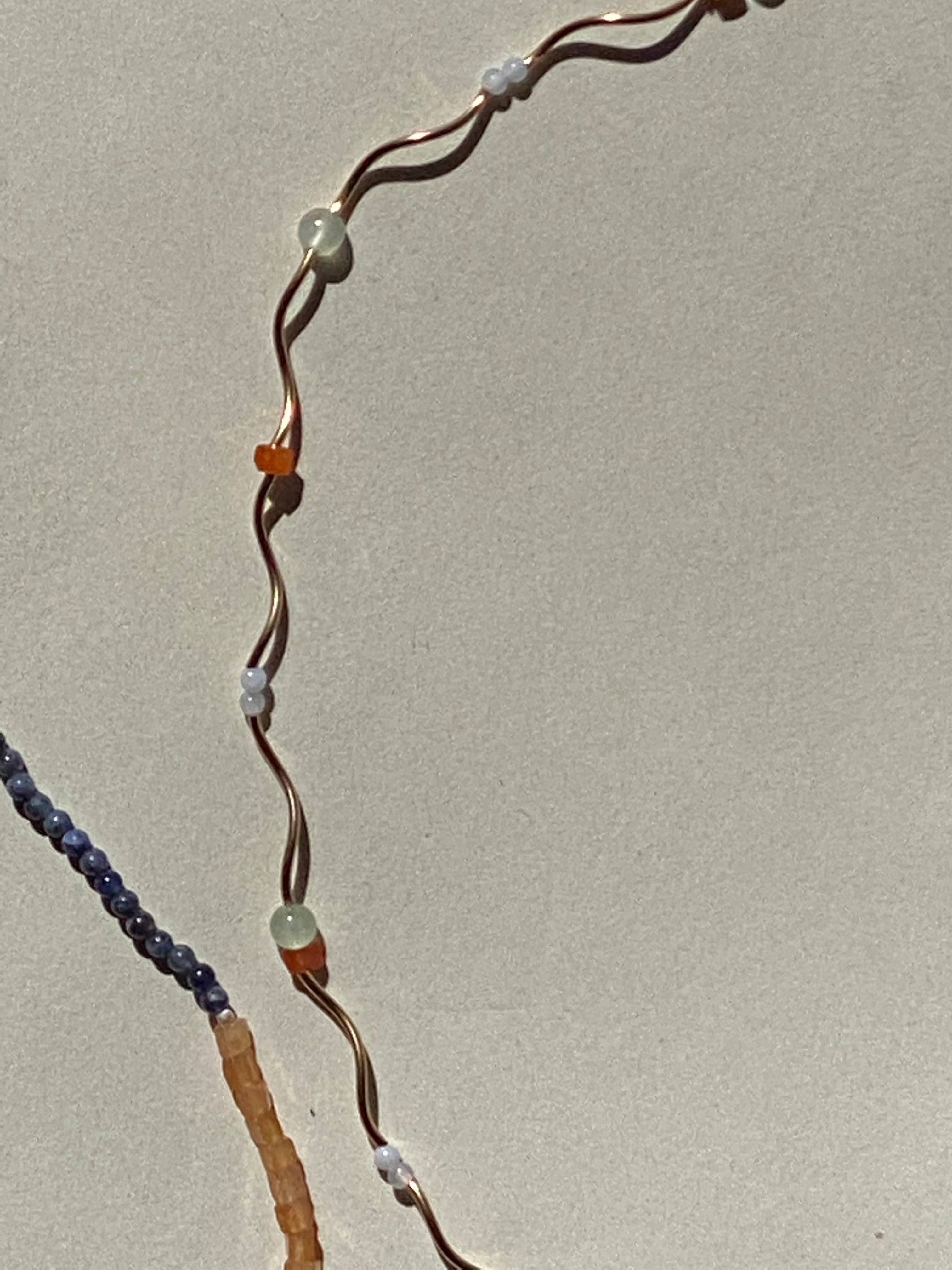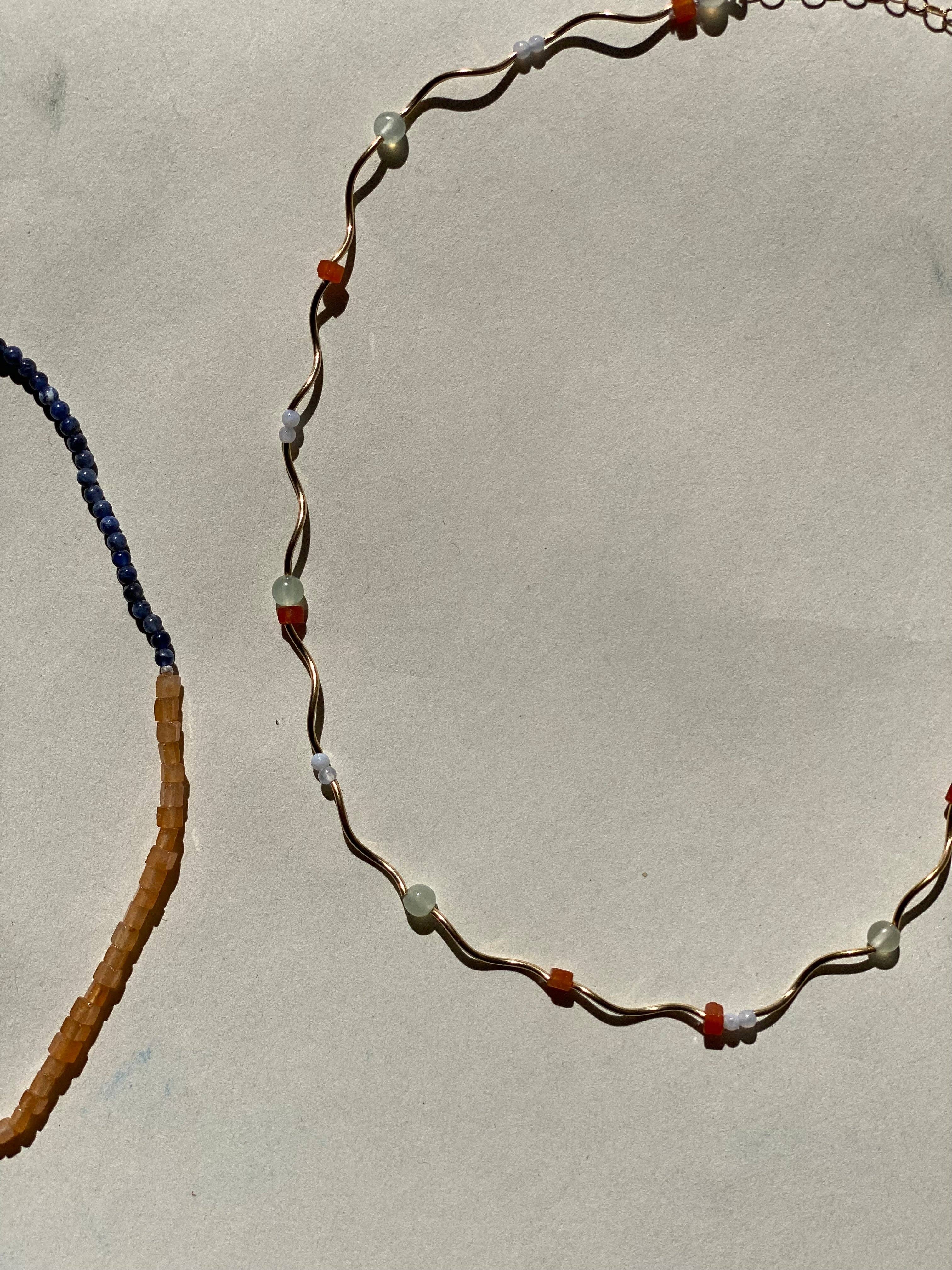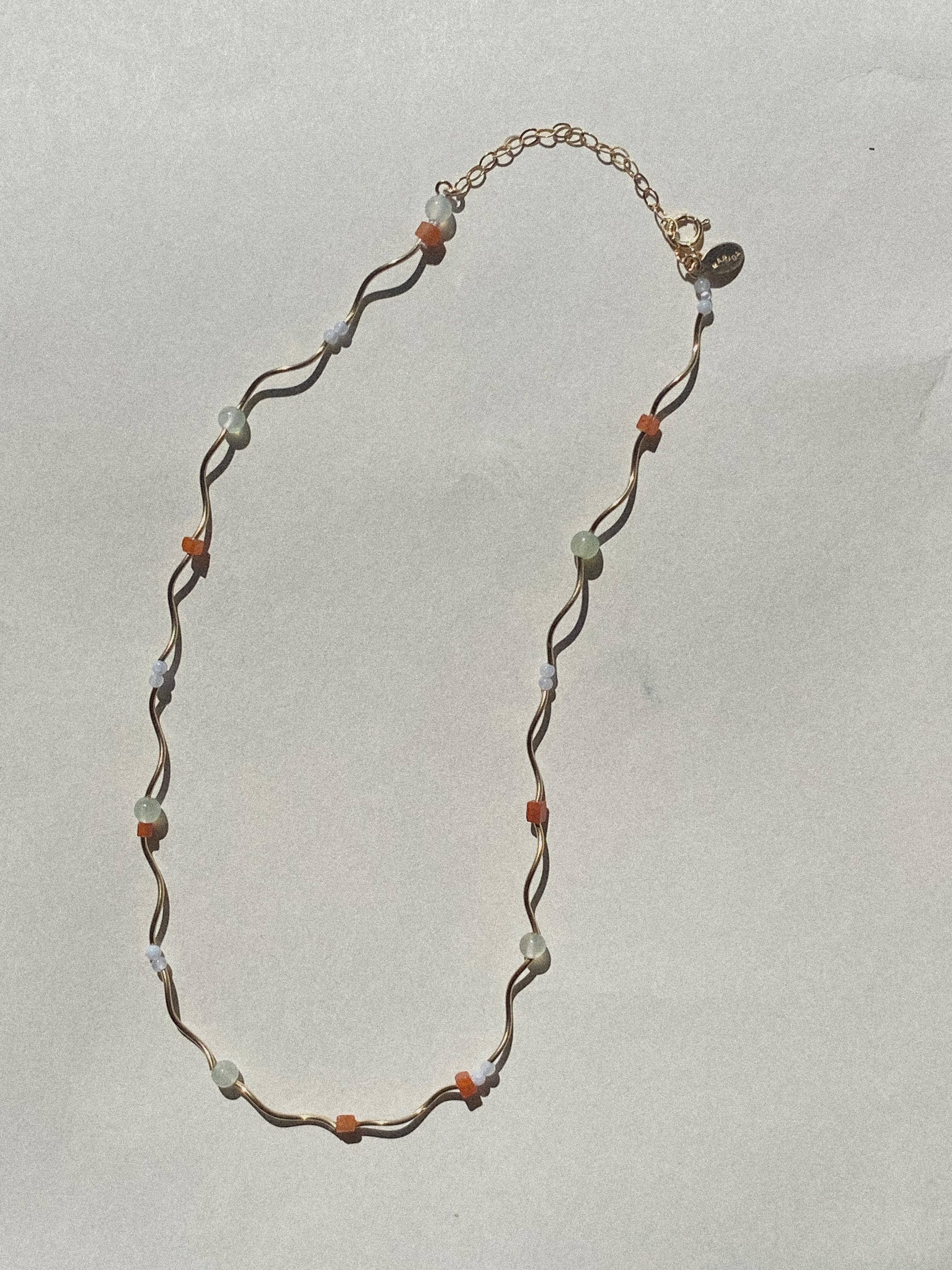 * The necklace features a mix of aventurine, blue lace agate, and jade. we love how fun and delicate this style is. * Metal Finish: Gold Filled * Circle Spring closure with 2” extension. * Stones measure 1-3mm
