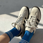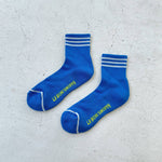 We loved our Boyfriend Socks so much we decided she needed a sister, the Girlfriend Socks is the cool crew version of our original bestseller and classic Boyfriend Socks. These beauties feature a triple contrast stripe at the opening and a shorter classic crew sock length. She is a universally quintessential sock and especially flattering for our petite ladies. Made in South Korea Contents: 85 Cotton 13 Polyester 2 Spdx Sizing: One size fits most (US women's size 6-10) Care Instructions: Machine wash cold Tumble dry low Do not iron Do not bleach
