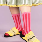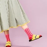 Everyone loves a good vacation, right? Inspired by beach towels, fringed parasols and cocktails al fresco, this poppy pair by Hansel from Basel should be packed for your next getaway. Ahhhh, can’t wait! Whether it’s the focal point of special occasion outfit or your everyday go-to sock, our comfy combed-cotton Conversational styles are versatile enough to do it all.