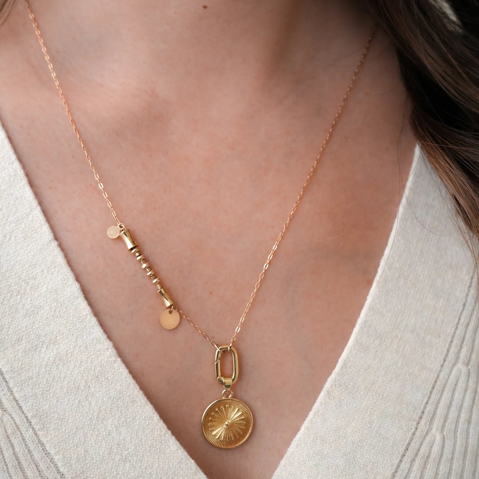 Let your ideas come to life with the Manifest Necklace. A symbol of creativity and determination, this necklace is the perfect accessory for the ambitious and driven. May it remind you that with a twinkle of the mind's eye, a little labor of love and the right intentions, anything is possible and will flourish so grandly before you.