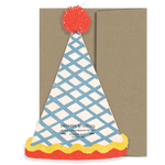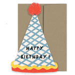 A fun retro party hat to wish someone a special Happy Birthday! A6 - 6.25x4.5" die cut folded card, printed in the USA on sustainably produced 18pt coated card stock. Each folded card is blank inside, comes with a brown kraft recycled envelope and is wrapped in a cello bag. Check the rest of the Birthday Collection here Original illustrations by Isabelle. Made by French hands in the USA!