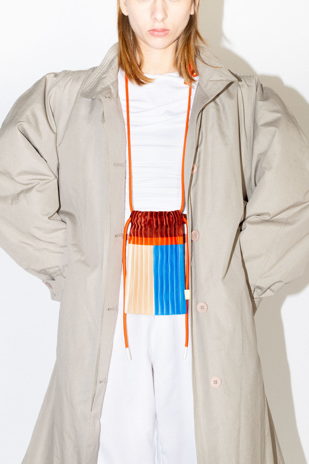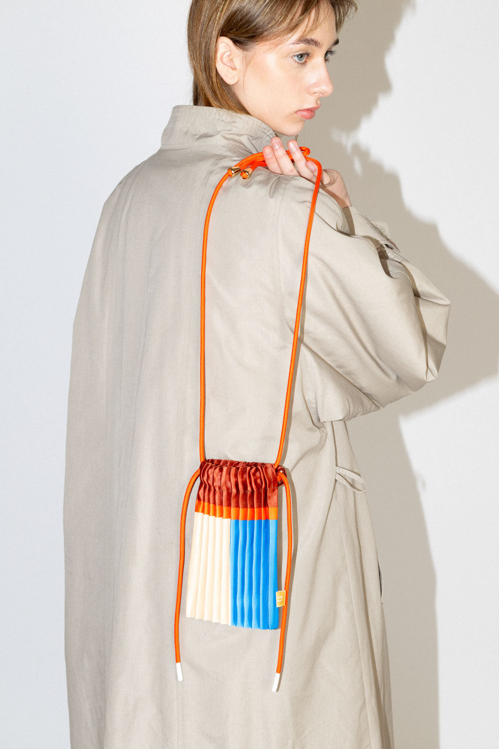 This pleated crossbody bag is the ideal size for carrying all your essentials: keys, phone, sunnies, and wallet. The pleated fabric bag is made of silk-effect synthetic satin, with a 56 cm adjustable shoulder strap and drawstring closure. Pleated fabric adds a touch of elegance to the bag.
