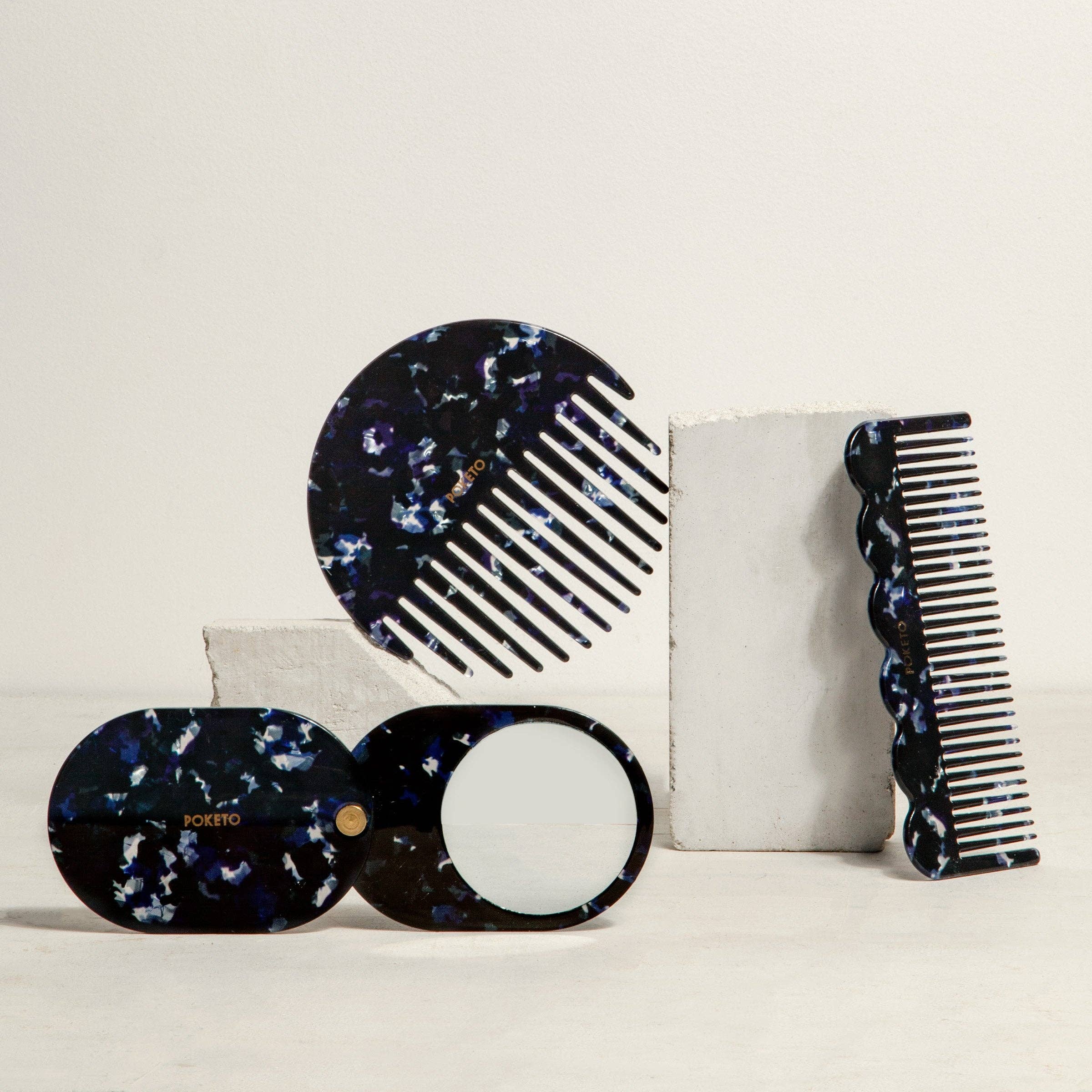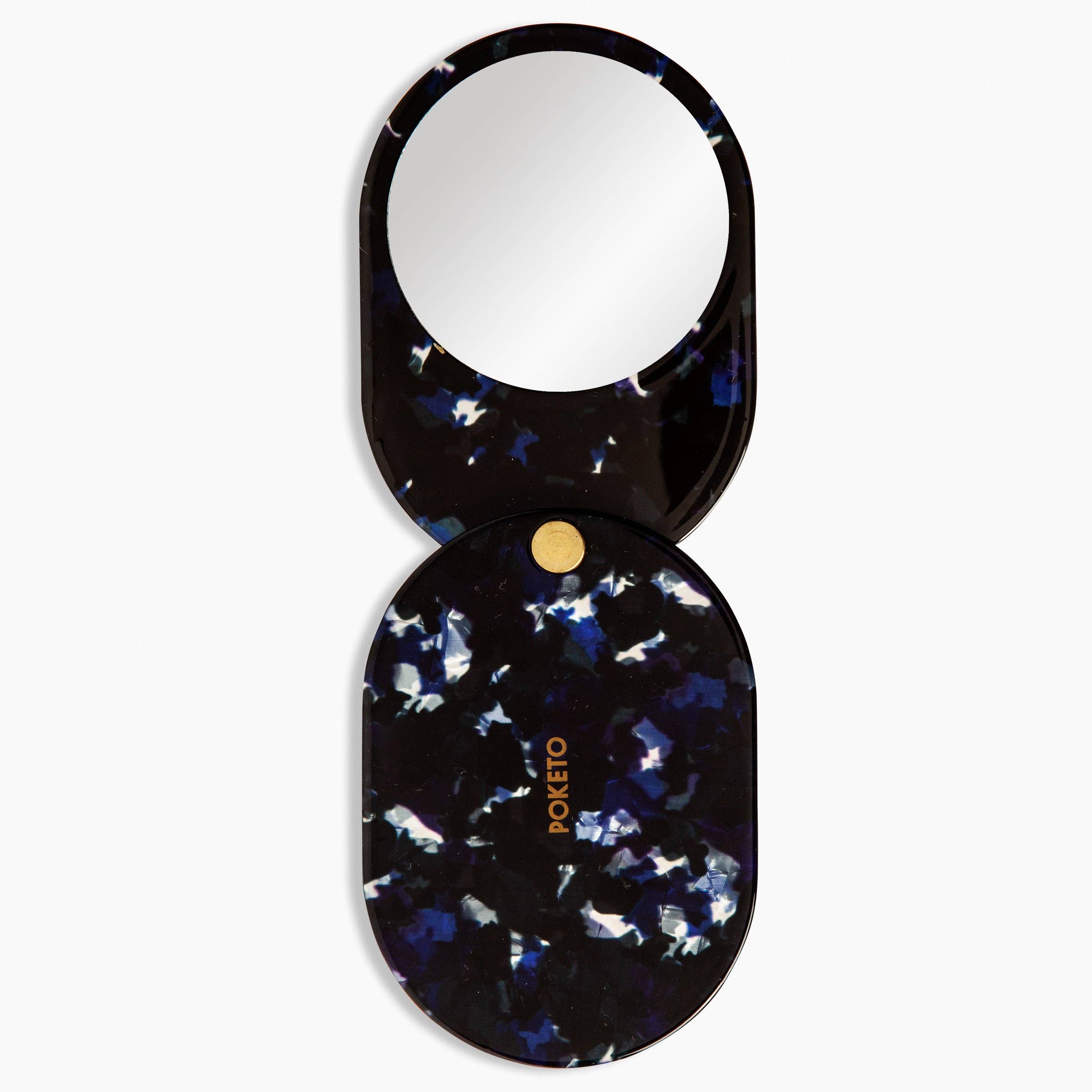 Beautiful enough to display on your vanity and functional enough to slip into your purse, this acetate pocket mirror fits easily in your hand and swivels open smoothly and easily for touch-ups on the go.