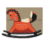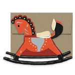 The Rocking Horse, a cute card for kids, or to congratulate on a new baby! A6 - 6.25x4.5" die cut folded card, printed in the USA on sustainably produced 18pt coated card stock. Each folded card is blank inside, comes with a brown kraft recycled envelope and is wrapped in a cello bag. Original illustrations by Isabelle. Made by French hands in the USA!