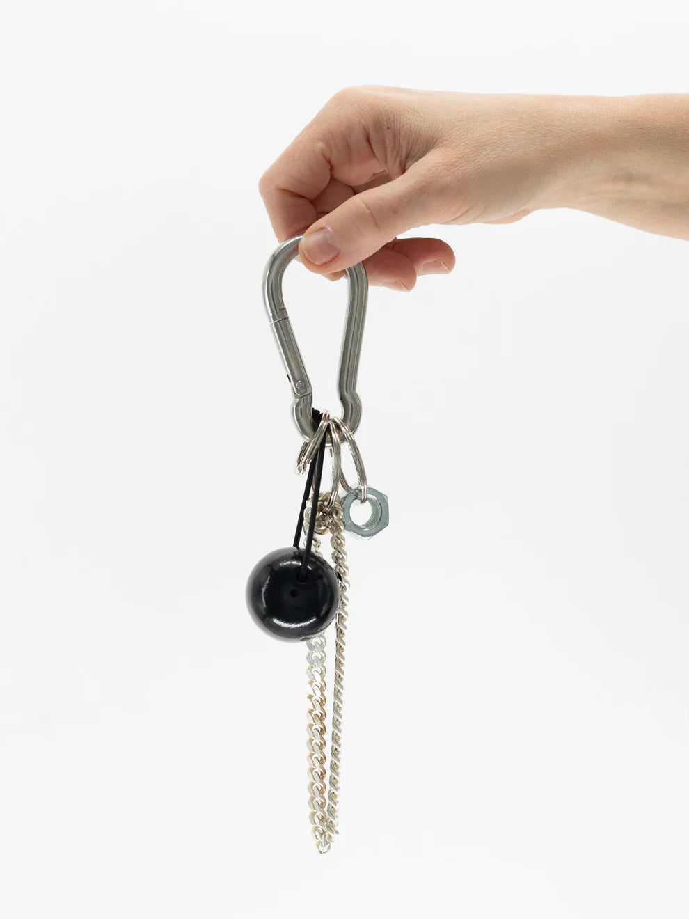 Steel carabiner with steel elements and XL wooden bead