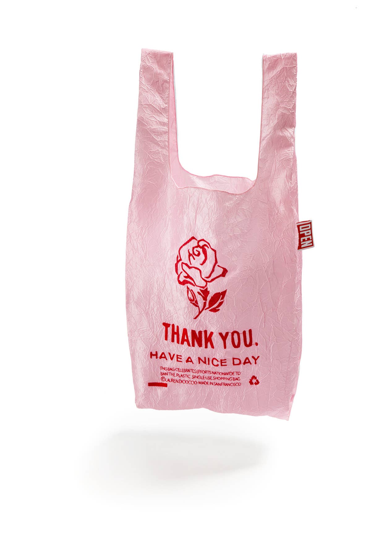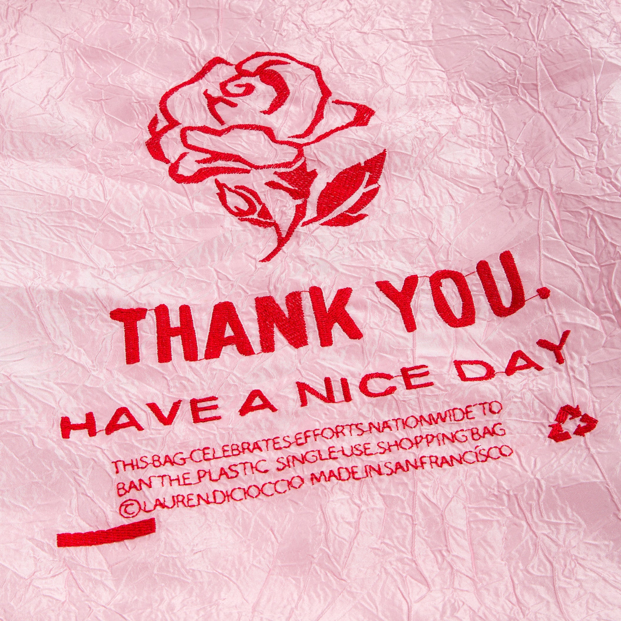 What fun is a reusable bag if you don't want to show it off? The THANK YOU THANK YOU Mini is a mini version of our classic tote, machine-embroidered on fabric made from 100% recycled materials. The totes are sturdy and washable, intended for daily use. The perfect THANK YOU gift, each tote in this series replaces the ubiquitous single-use plastic bags issued by convenience stores with a friendly reminder to reuse and recycle.