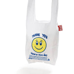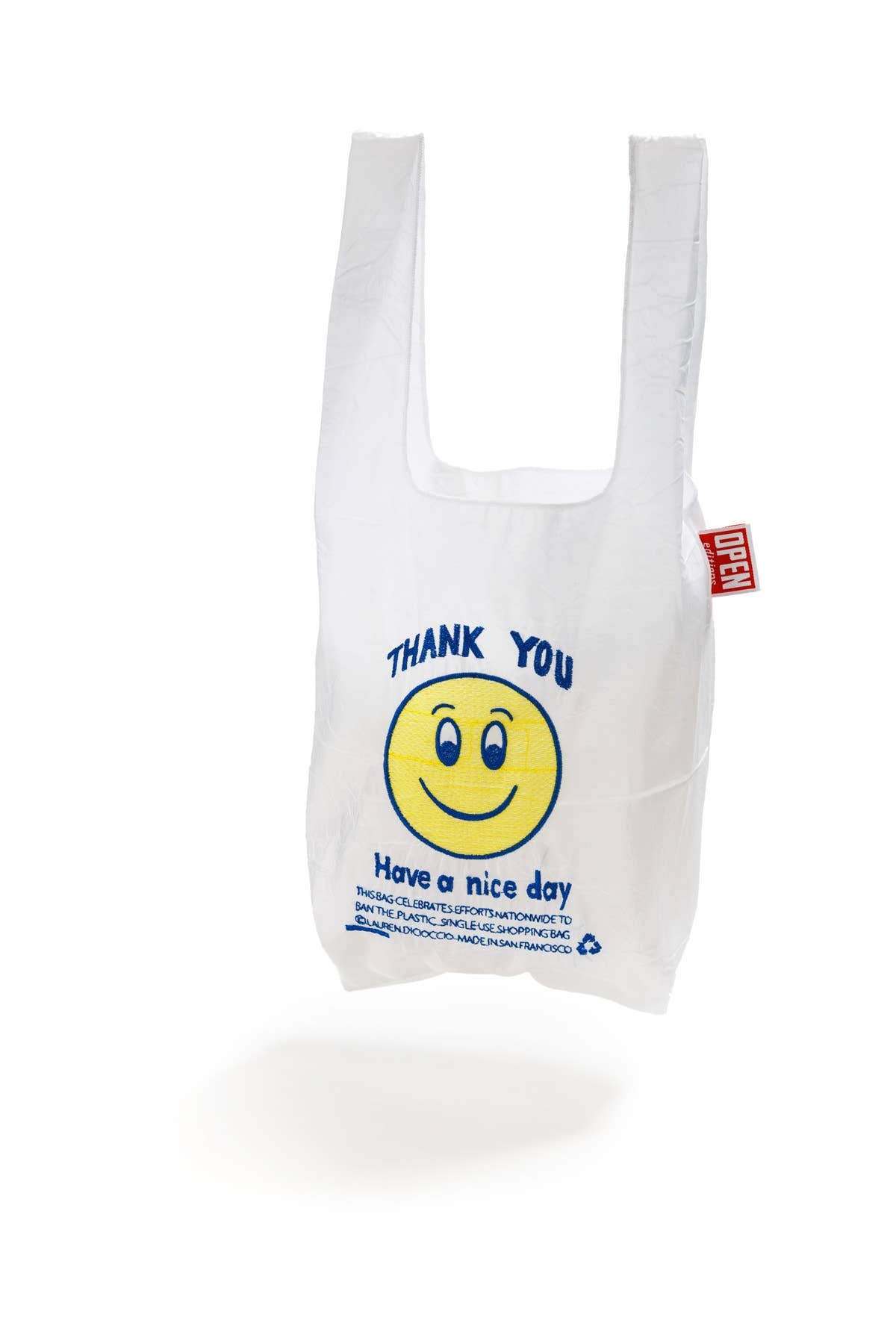 What fun is a reusable bag if you don't want to show it off? The THANK YOU THANK YOU Mini is a mini version of our classic tote, machine-embroidered on fabric made from 100% recycled materials. The totes are sturdy and washable, intended for daily use. The perfect THANK YOU gift, each tote in this series replaces the ubiquitous single-use plastic bags issued by convenience stores with a friendly reminder to reuse and recycle.