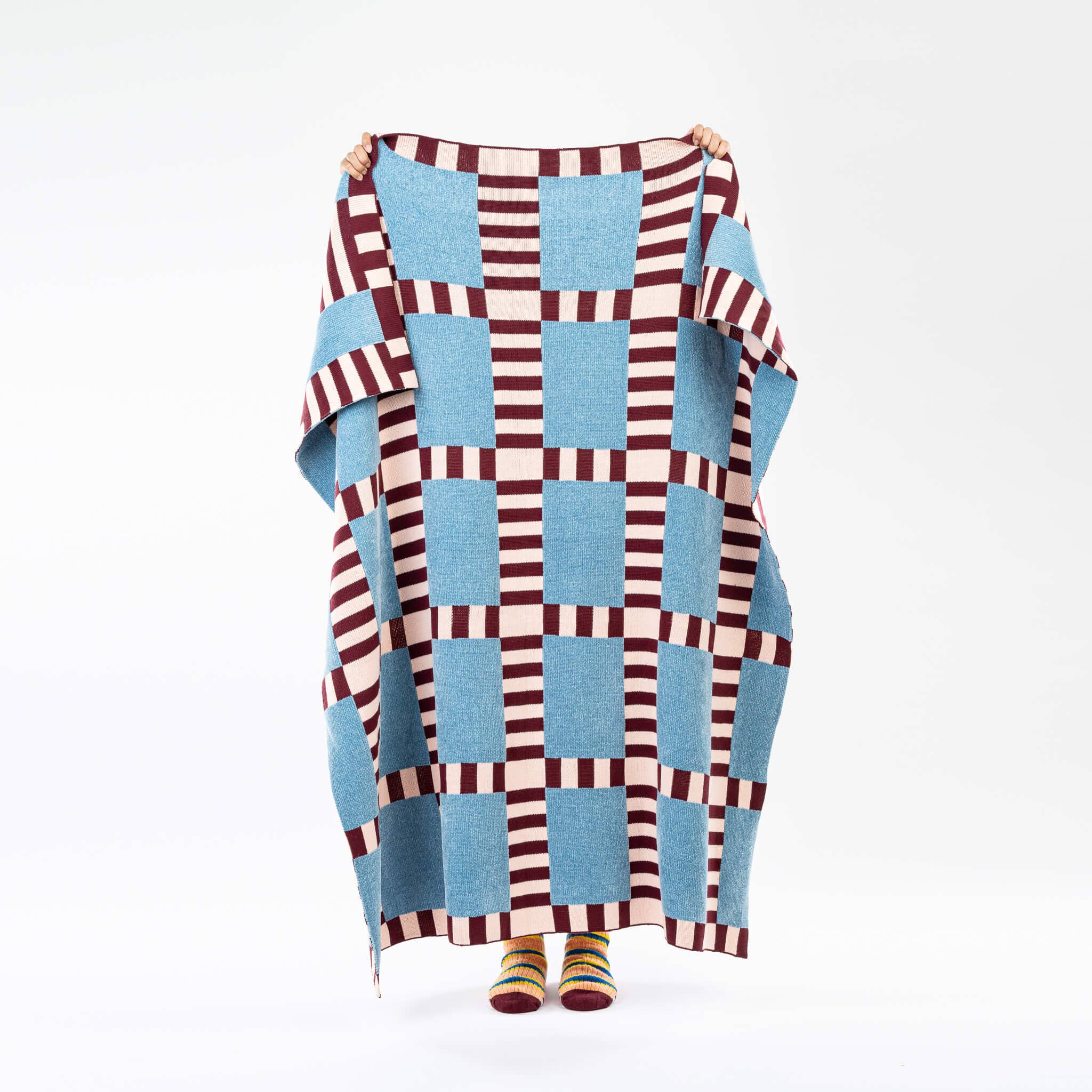 Colorblocked knit throw with two-tone dimensional chenille stripes. Mix and match with contrasting patterns or layer with coordinating pillows, here and here, for a high-impact look. Fully reversible.