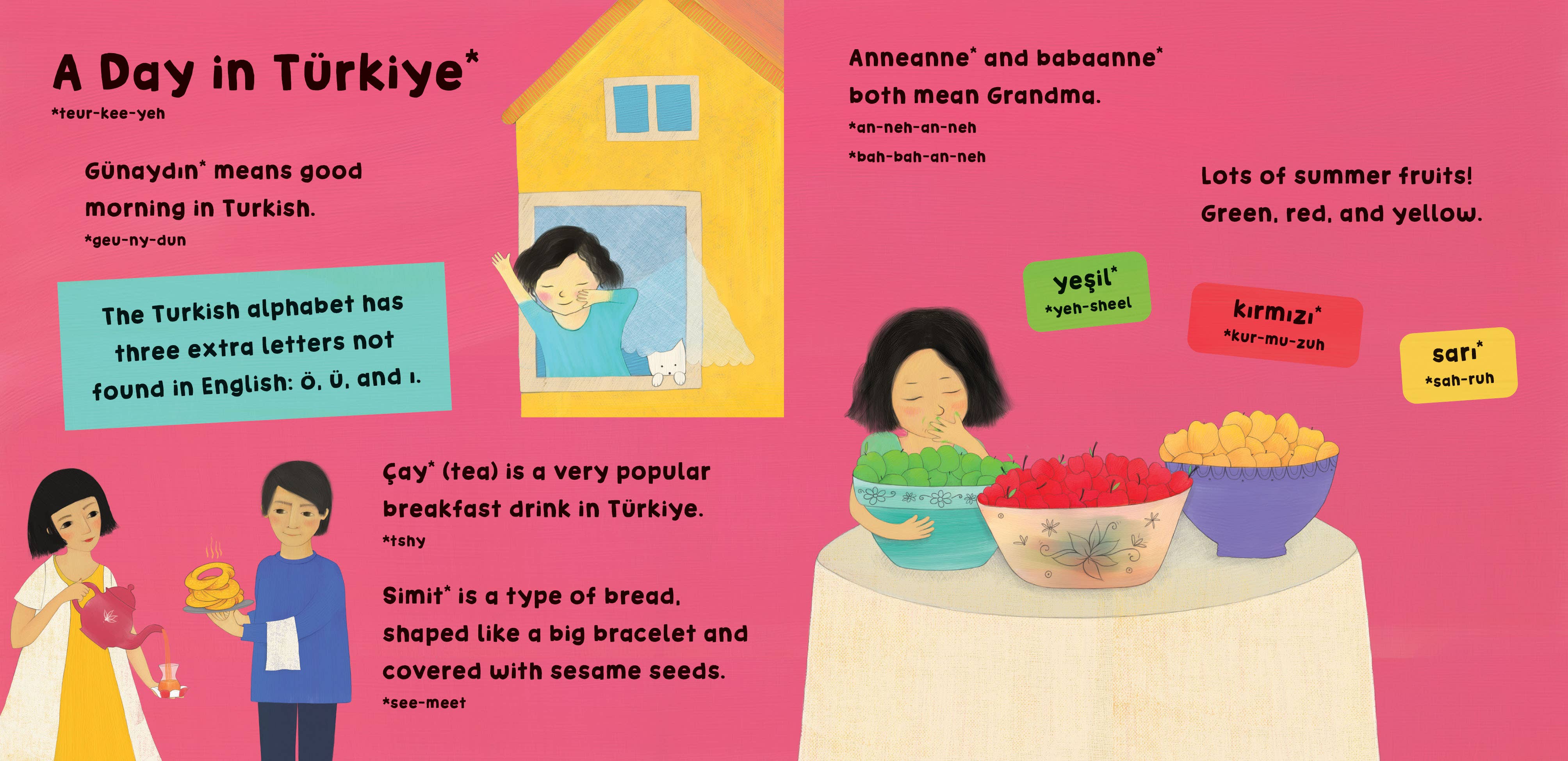 Let’s spend a day in Türkiye. Eat fresh simit and plums, play yakantop, and read stories inside coffee cups. Even learn words in Turkish with pronunciation guides throughout the story. ·Part of the Barefoot Books Our World series ·Written by Turkish author and illustrator Emrah Güler and Deniz Üçbaşaran ·Extended endmatter offers a further glimpse into life in Türkiye