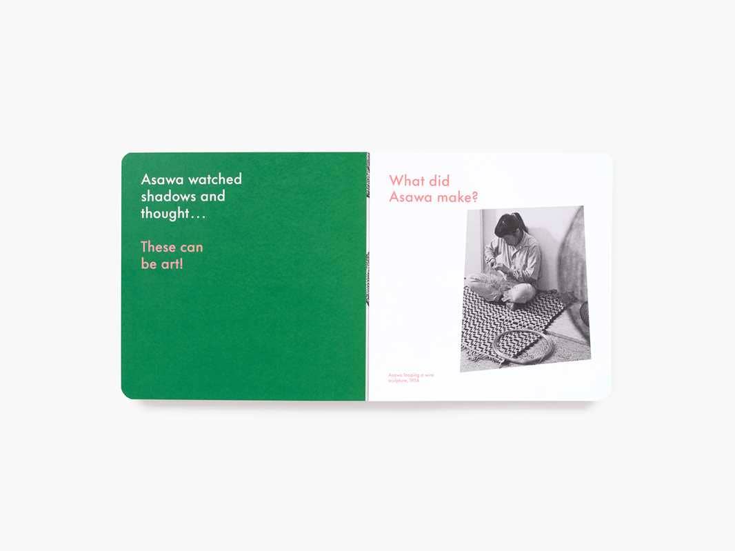 [David Zwirner Books] Explore the world of artist Ruth Asawa in this lively, interactive lift-the-flap book for children ages 0–3. Ruth Asawa found inspiration everywhere—whether she looked to her children, her garden, or the warmth of her home, she believed that anything could become art. Her engaging work invites young artists to discover how creativity can sprout from anywhere. Through her unique wire sculptures and natural watercolors, Asawa demonstrated that even the simplest materials can be transformed into something extraordinary. Her work encourages children to explore their own imaginations and to see the beauty in the everyday world around them. The What Artists Make series of lift-the-flap books, geared toward children under the age of three, shares the different ways artists view the world. In each book, one artist’s unique method of making or outlook on creativity is explored through rhythmic sentences and photographs of artworks selected to delight and ins