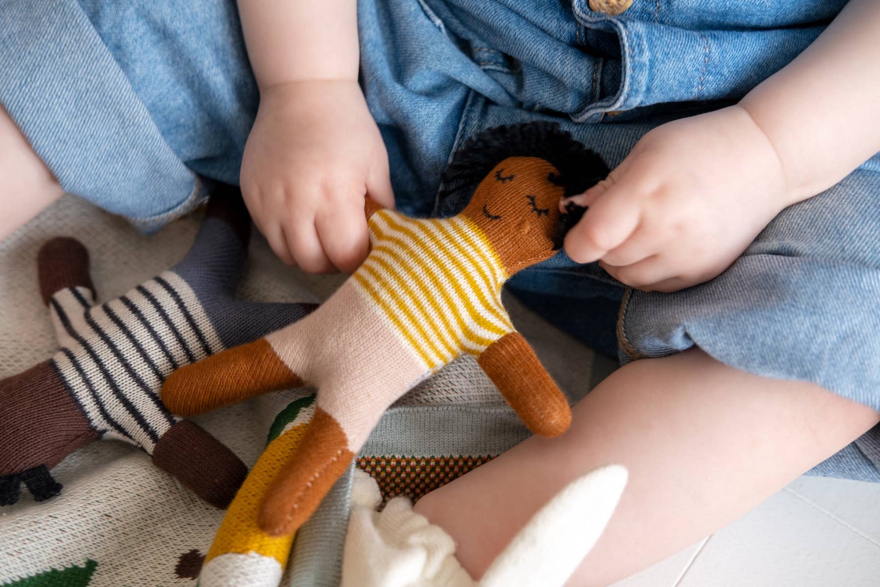 A Buddy Rattle is a perfect present for a newborn. Gift them a pal that will be by their side as they develop a curiosity in the world alongside their fine motor skills. Everyone needs a good friend around! Materials: 100% cotton knit outer with biodegradable filling Dimensions: 14cm (5.5") tall approx Care: Machine washable at 30°C (tumble drying not recommended) CE & UKCA tested suitable from birth Packaging: Kraft header card + makes a classic rattle sound + stuffed with a biodegradable filling + absolutely safe to go in the mouth & washing machine + perfect unisex baby gift