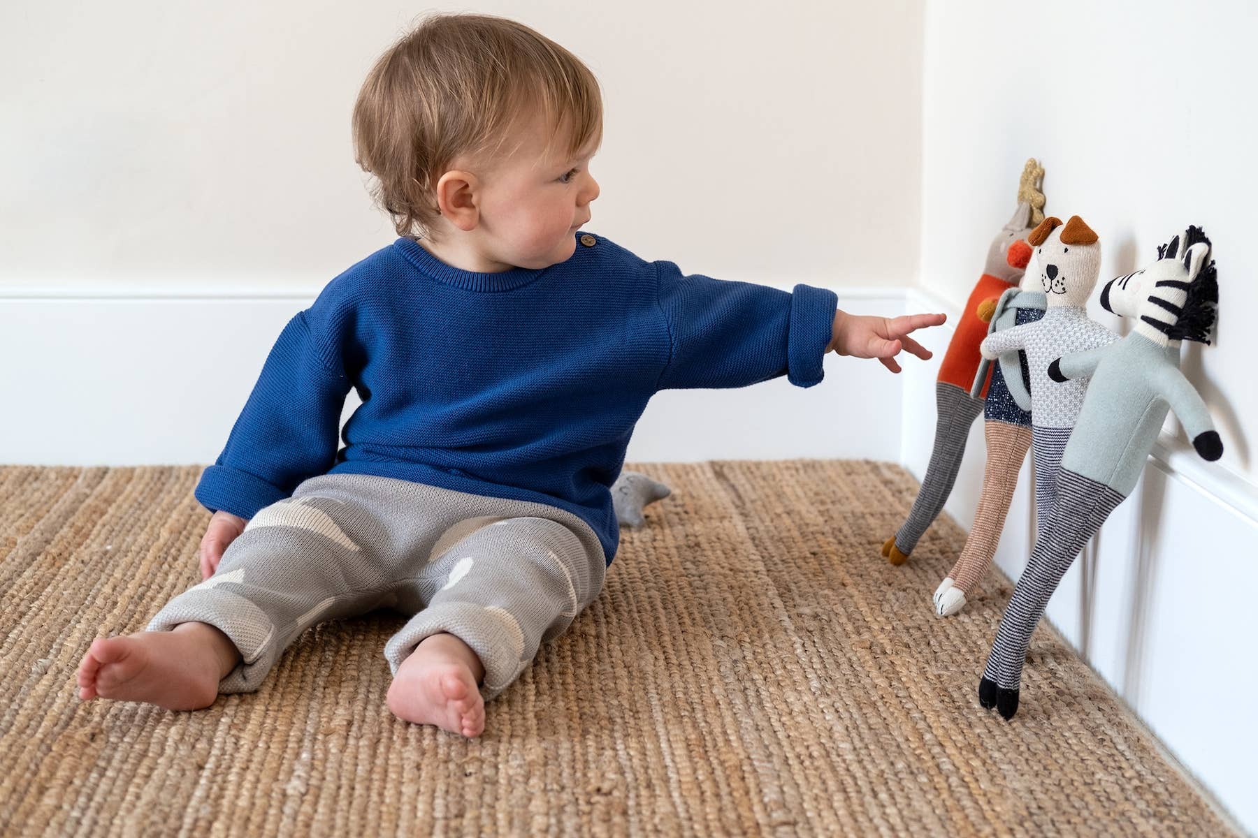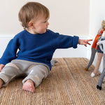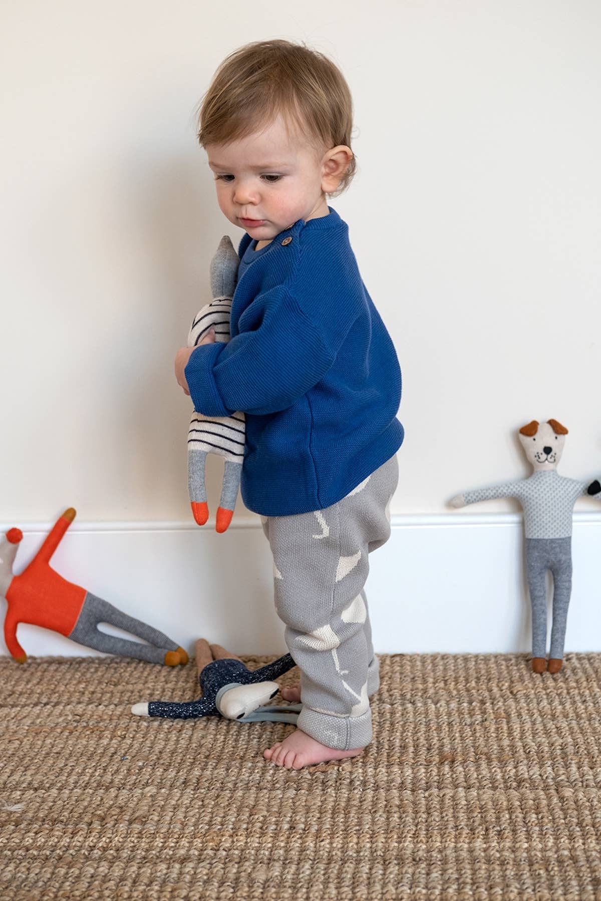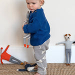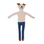 We all love dogs! And this cute dog would make a very loyal first friend for someone!He is knitted in the softest cotton and filled with a biodegradable stuffing, before being finished with the cutest embroidered details. The delightful bendy limbs are the perfect fit for little hands. Materials: 100% cotton knit outer with biodegradable filling Dimensions: 30cm (12") tall approx Care: Machine washable at 30°C (tumble drying not recommended) CE & UKCA tested suitable from birth Packaging: swing ticket + stuffed with a biodegradable filling + absolutely safe to go in the mouth & washing machine + perfect unisex baby gift
