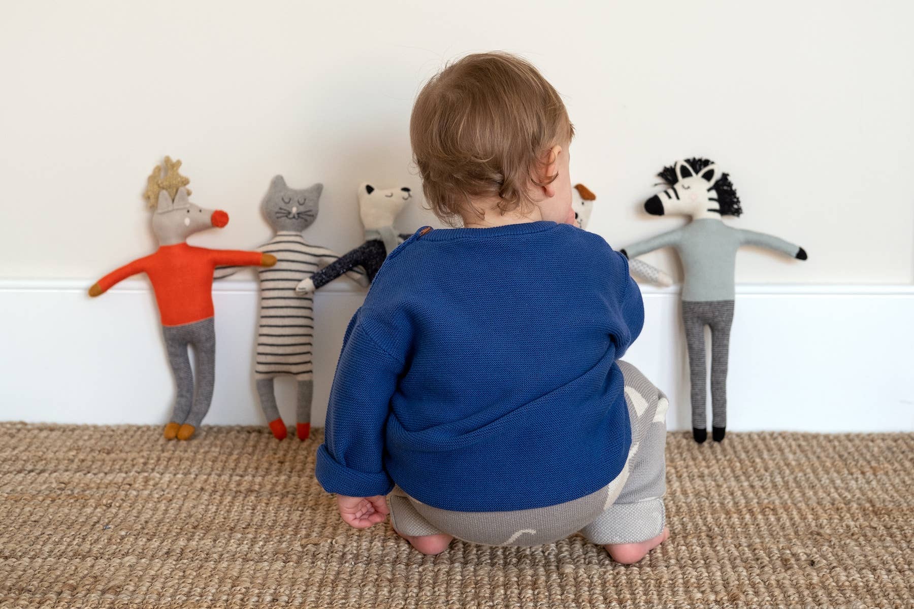 Our rabbit is the ideal unisex new baby gift. Our loveable bunny is knitted in the softest cotton and filled with a biodegradable stuffing before being finished with the cutest embroidered details. The delightful bendy limbs are the perfect fit for little hands and the ears are just asking to go straight in the mouth! Materials: 100% cotton knit outer with biodegradable filling Dimensions: 30cm (12") tall approx Care: Machine washable at 30°C (tumble drying not recommended) CE & UKCA tested suitable from birth Packaging: swing ticket + stuffed with a biodegradable filling + absolutely safe to go in the mouth & washing machine + perfect unisex baby gift