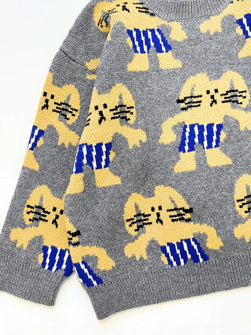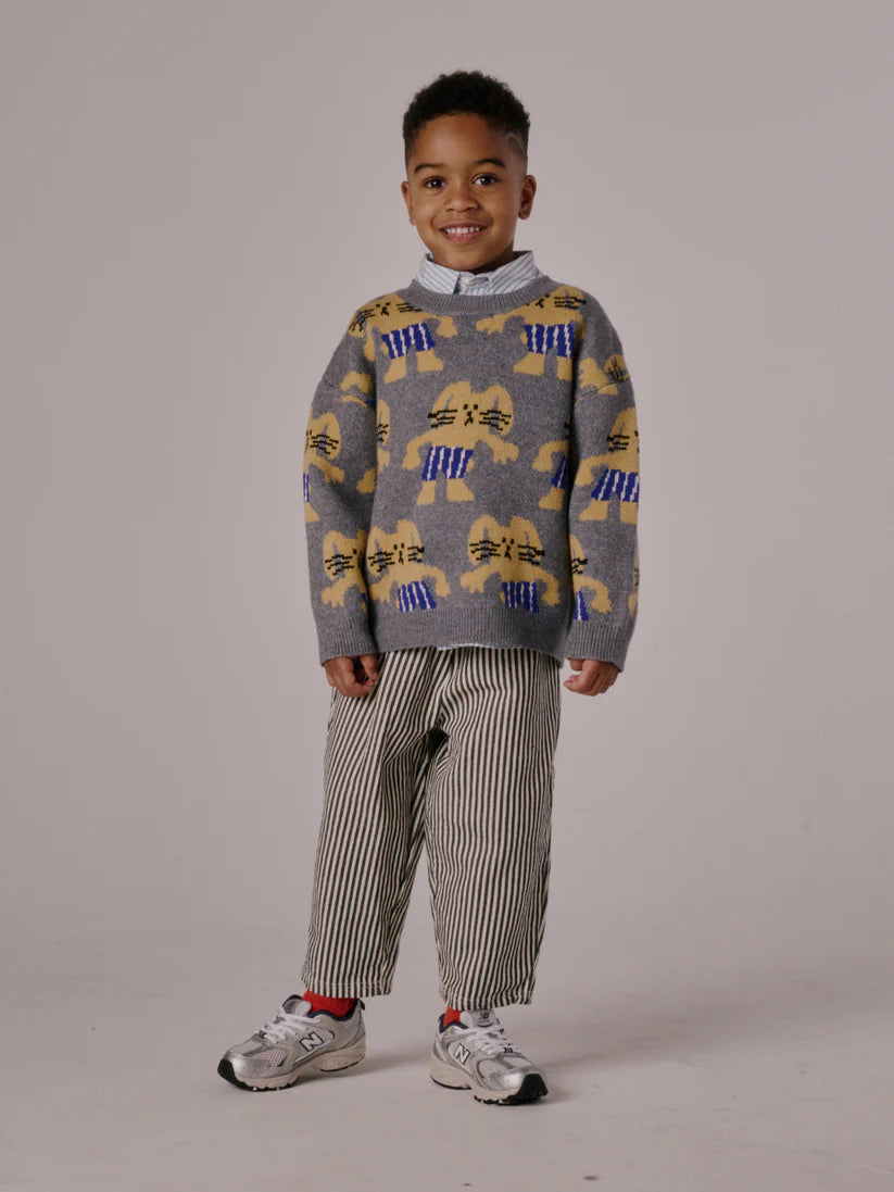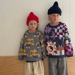Super-comfy sweaters from the in-house Milk Teeth label, featuring signature artist-designed patterns. The boxy crewneck has dropped shoulders, ribbed trim, and a slightly oversized fit inspired by a favorite slouchy sweatshirt. An all-over pattern showcases Max, a new bunny friend in stripy shorts. Made from seriously soft, itchy-kid-approved yarn for all-day comfort.
