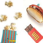 A movie night combo! It includes a hot dog, popcorn, and chocolate – perfect for your cinematic enjoyment!