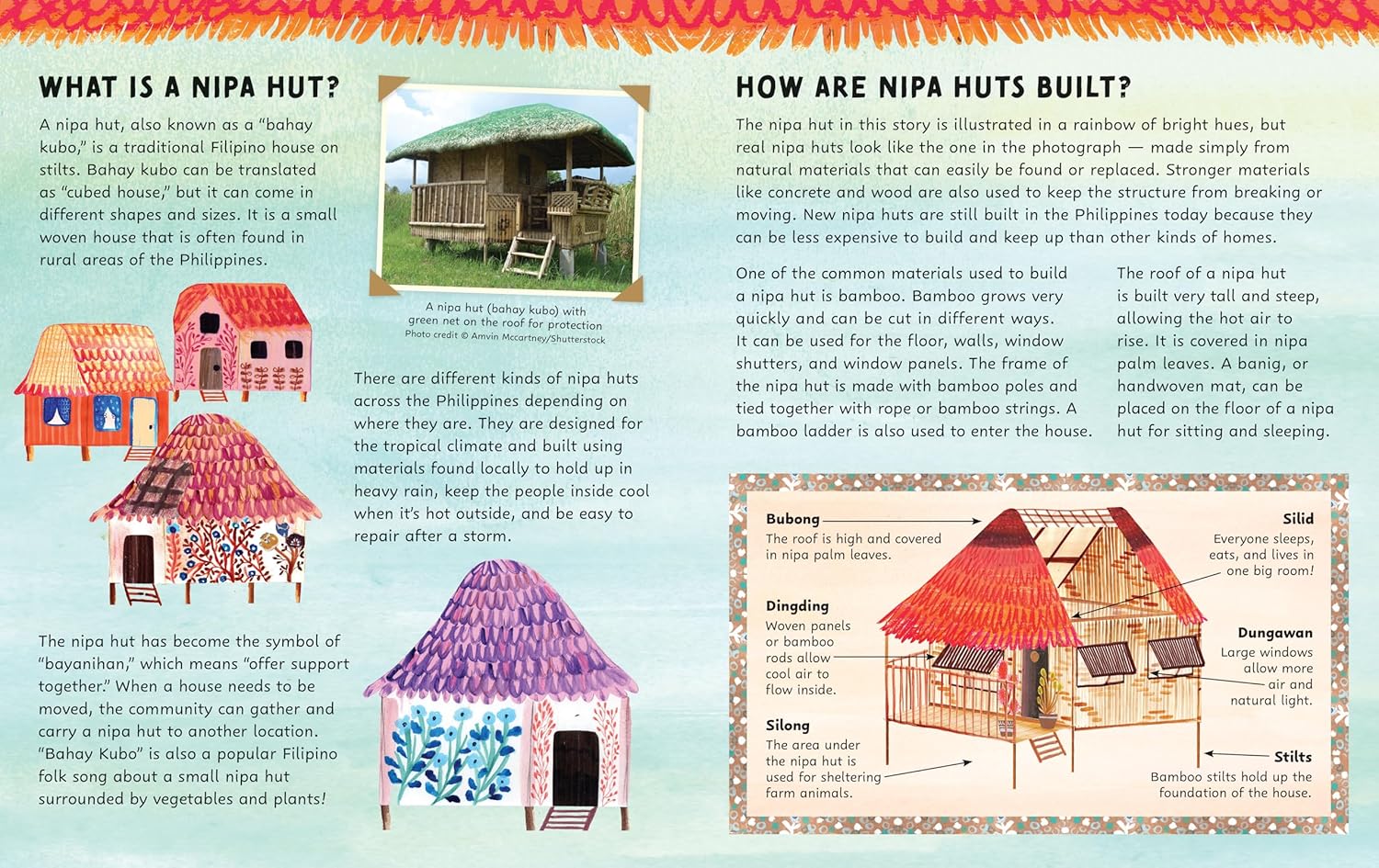 Yelena and Papa take care of their traditional Filipino dwelling – their nipa hut – and it takes care of them. But when a tropical storm roars towards the Philippines, their preparation will be put to the test. Gripping narrative will keep young readers glued to the pages as Yelena, Papa and the nipa hut work together as a family to withstand the storm.