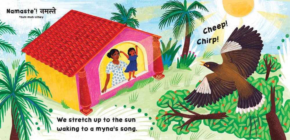 Come along for a day in India! Wake to a myna bird’s song, dine on dal, count mango trees and more. Author Meera Sriram (A Gift for Amma, Dumpling Day) and illustrator Neethi draw on their personal experiences of life in India to create this appealing board book as part of the Our World Series for very young readers. Related to: Global, Baby, Toddler, Daily Routine, Culture, Cultural Awareness, Newborn, Preschool, Preschooler, Nursery, Kindergarten, Kindergartener, Classroom, Diverse, Language Learning, Indian, Hindi, Hindu, Asia, Asian