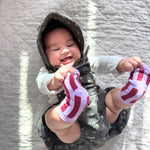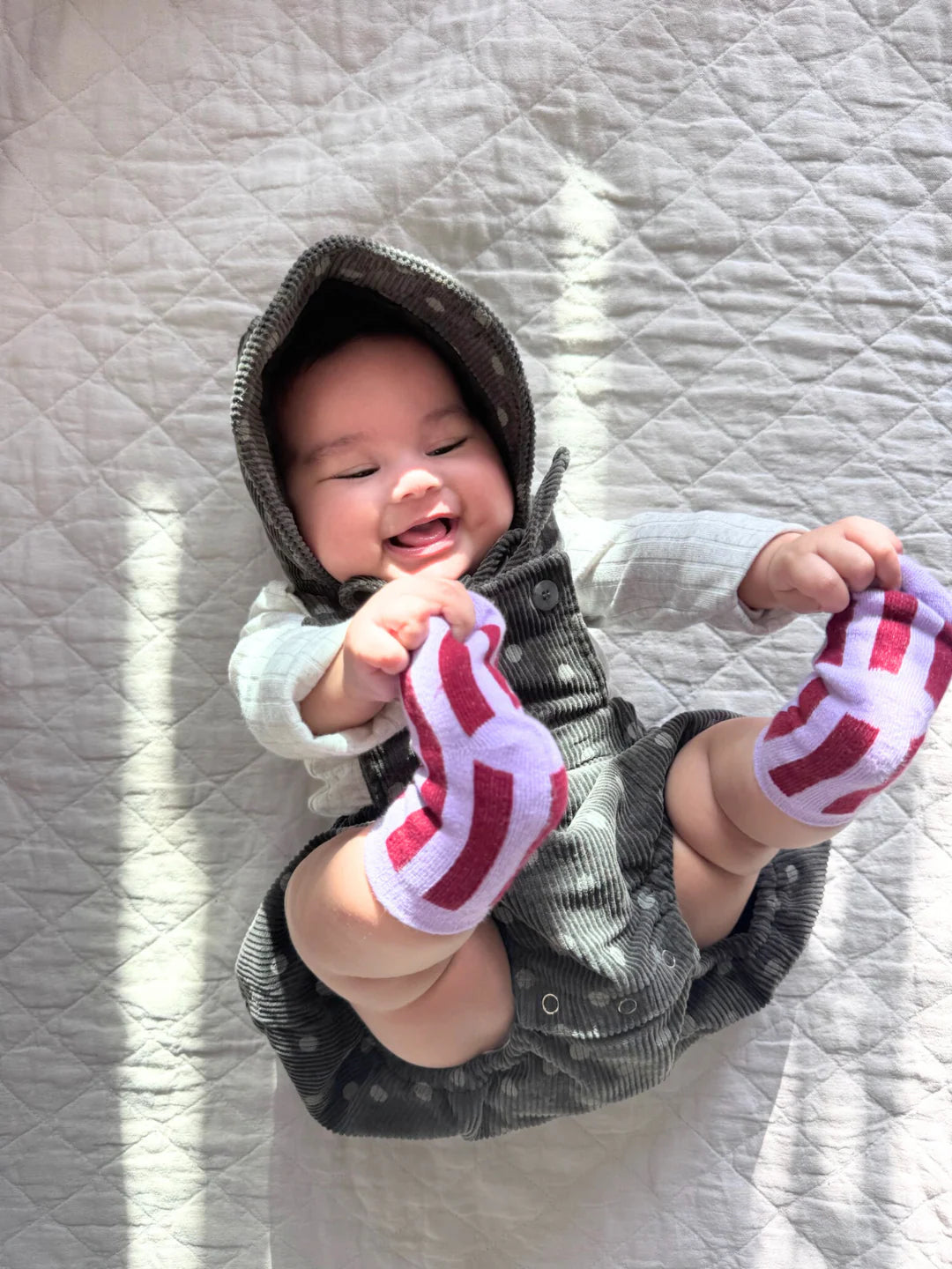 New stripy socks in plush, stretchy cotton. Simple but outfit-making, and always comfy.