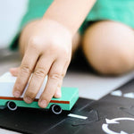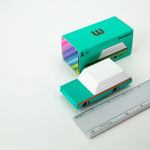 Part of our new Candycar line, a cute 3 inches long. A spin-off of our most classic Woodie, but this time, tiny! Materials & Info: Solid Beech Wood, water-based paint and clear urethane coat. ABS plastic rims, with plastic tires. Safety tested according to US CPSIA and European, Australian and New Zealand regulations. Not for children under 3 years of age. Dimensions: 3.5" L x 1.6" W x 1.2" H (8.9cm L x 4cm W x 3.1cm H Weight: 3oz / 85g Packaging: 3.65" L x 1.7" W x 1.7" H (9.27cm L x 4.32cm W x 4.32cm H) Keywords: Candy Car, Bite-Sized, Small Car, Little Car, Teal Wagon, Teal, Racer, Teal Race Car, Little Race Car, Small, Little, teal, teal candycar, teal racer, bitesized, small car, little, candycar, candy car, candy, Candy, Candycar