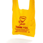 What fun is a reusable bag if you don't want to show it off? The THANK YOU THANK YOU TOTE is machine-embroidered on fabric made from 100% recycled materials. The totes are sturdy and washable, intended for daily use. The perfect THANK YOU gift, each tote in this series replaces the ubiquitous single-use plastic bags issued by convenience stores with a friendly reminder to reuse and recycle. Designed by artist Lauren DiCioccio in 2012 to commemorate San Francisco's historic legislation enacting the first plastic bag ban in the USA in 2007, this series now celebrates worldwide efforts to continue the 'ban on the bag'. Cut, sewn and embroidered in San Francisco on 100% recycled fabric, certified to meet the Global Recycling Standard. Tote measures 11.5" x 22" x 4"