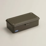 Steel Storage Box with flat lid, made from one piece of steel, resulting in no sharp edges. Can be stacked securely due to the negative / positive imprints on the top and underside.  Use for art supplies, make-up, nail polish, teas, travel documents - the possibilities are endless.