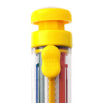To select a color, twist around the top and push down on the side button. Meets European CE standards, certified safe for use by children.