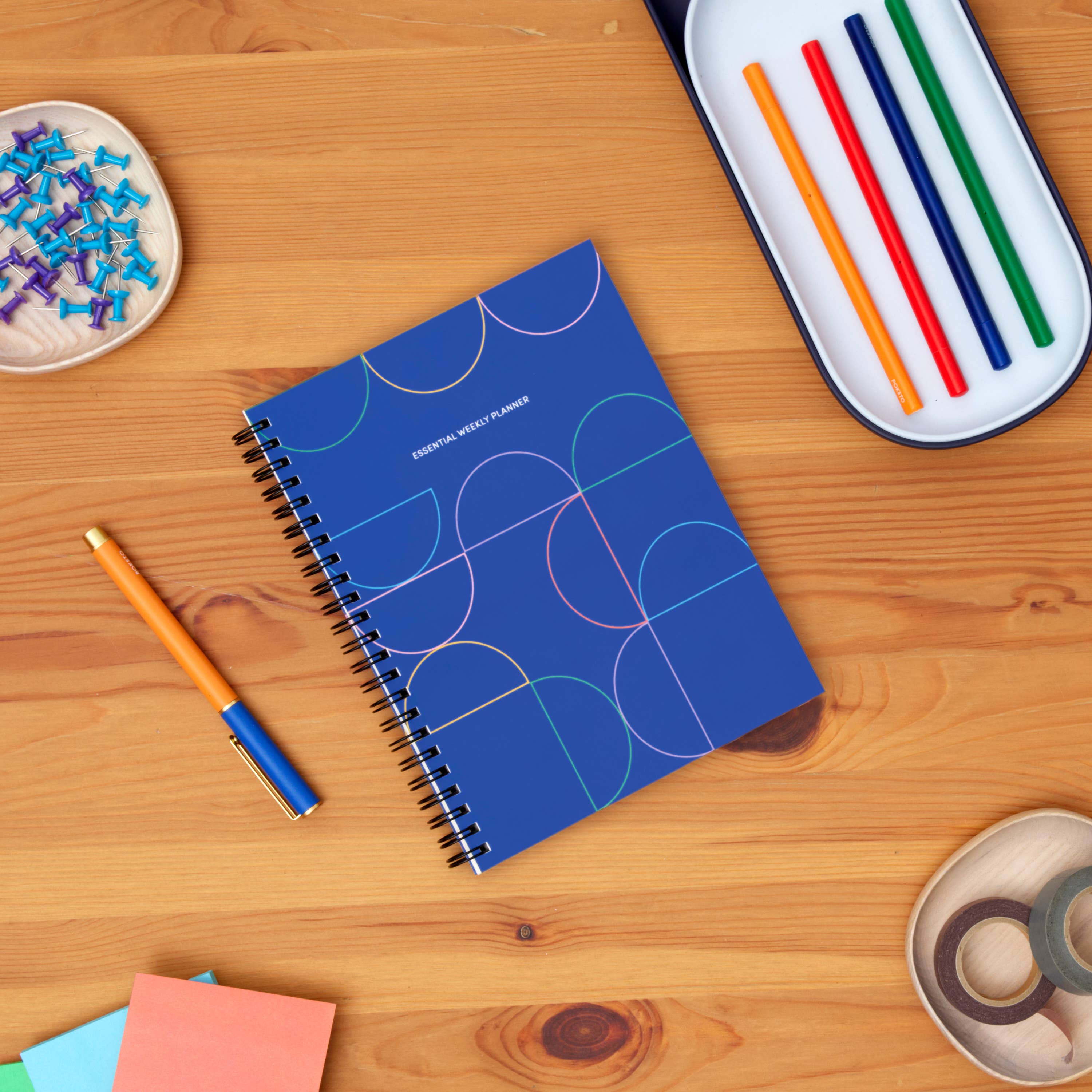The Essential Weekly Planner stands as more than just an organizational tool—it's a sleek companion for anyone devoted to structured living and aesthetic appeal. Ideal for the bustling professional, the earnest student, or the individual focused on personal advancement, this planner is about charting a course for your dreams, setting tangible objectives, and observing your evolution with grace and precision. Durably constructed to endure daily demands, it features a layout that accommodates weekly priorities and life ambitions, proving its worth as a true partner in productivity. Its pages marry practicality with motivation, affirming its purpose beyond scheduling—it's a collaborator in your journey toward achievement. 8" x 6" (20.32 x 15.24 cm) 52 Undated Pages To-Do List & Habit Tracker, Journal & Planner Spiral Binding Home, School & Office Supplies