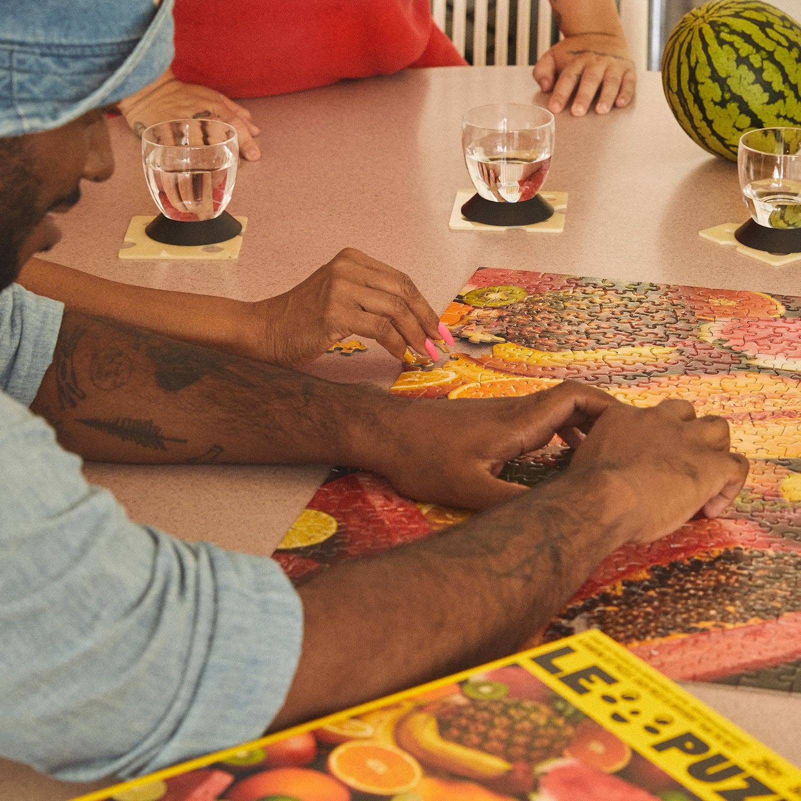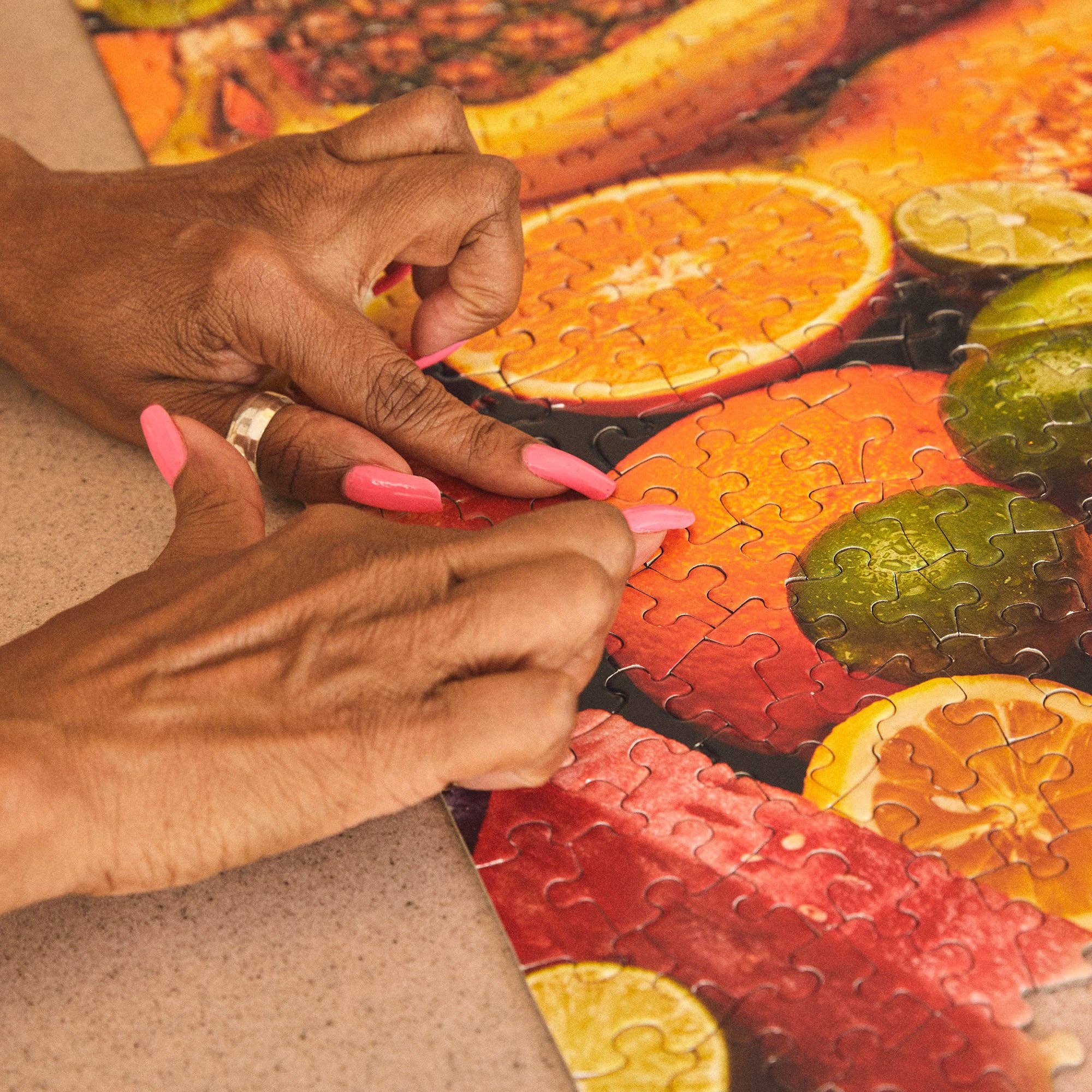 Juicy is a take on a classic jigsaw puzzle theme — a giant pile of fruit! You might start with the edges or dive right into sorting out the limes. Trypophobia warning this puzzle does feature strawberry and papaya seeds.