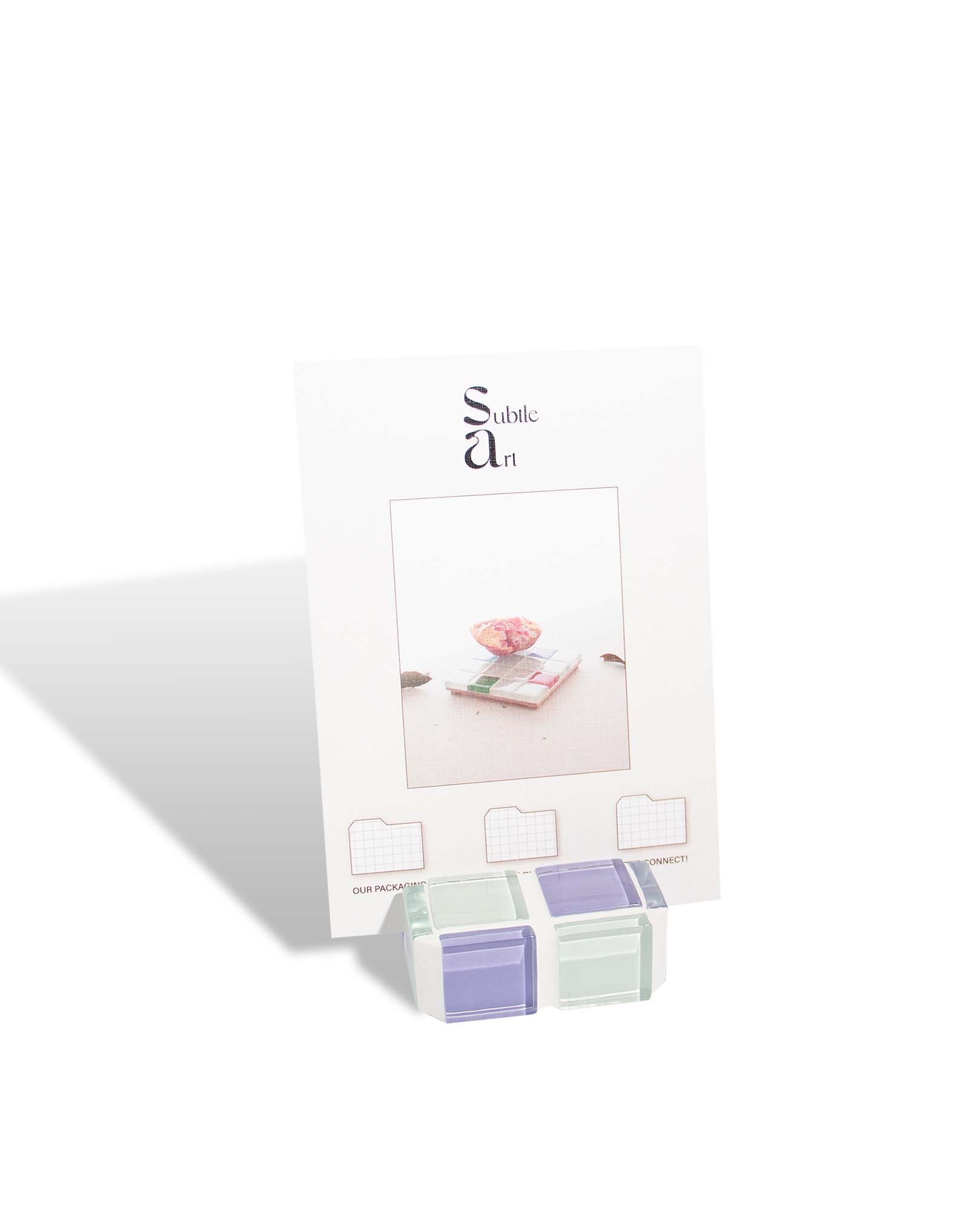 Glass tile wood display blocks that are perfect and unique for holding treasured cards, photos, business cards, order numbers and so much more.  All handcrafted MEASUREMENT: approx. 2.5in x 2.5in x 1in MATERIALS: We use high-quality glass tiles that can handle high temperatures well, so you can definitely place a cup of hot beverage on.  **Pieces are handcrafted, so the finish may differ slightly. **Colors may vary slightly due to different screens/monitors.