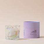 No. 5 Lavandin + Chamomile made with hemp coconut soy blend wax+burns with a hemp wick all in a groovy clear IRIDESCENT glass vessel meant to be reused. *Each vessel is unique in shape that is out of our control. 7.2 oz. in an 8 oz. vessel. Burn for 40-50 hours under optimal burning conditions.