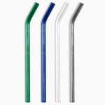 Reusable glass straws that are durable enough to take with you anywhere. Environmentally sustainable and compact, this set of straws fights one-use plastic waste culture one sip at a time, anytime. Made with Borosilicate glass which is resistant to thermal shock, more so than any other common glass. It also comes in Cool colors.