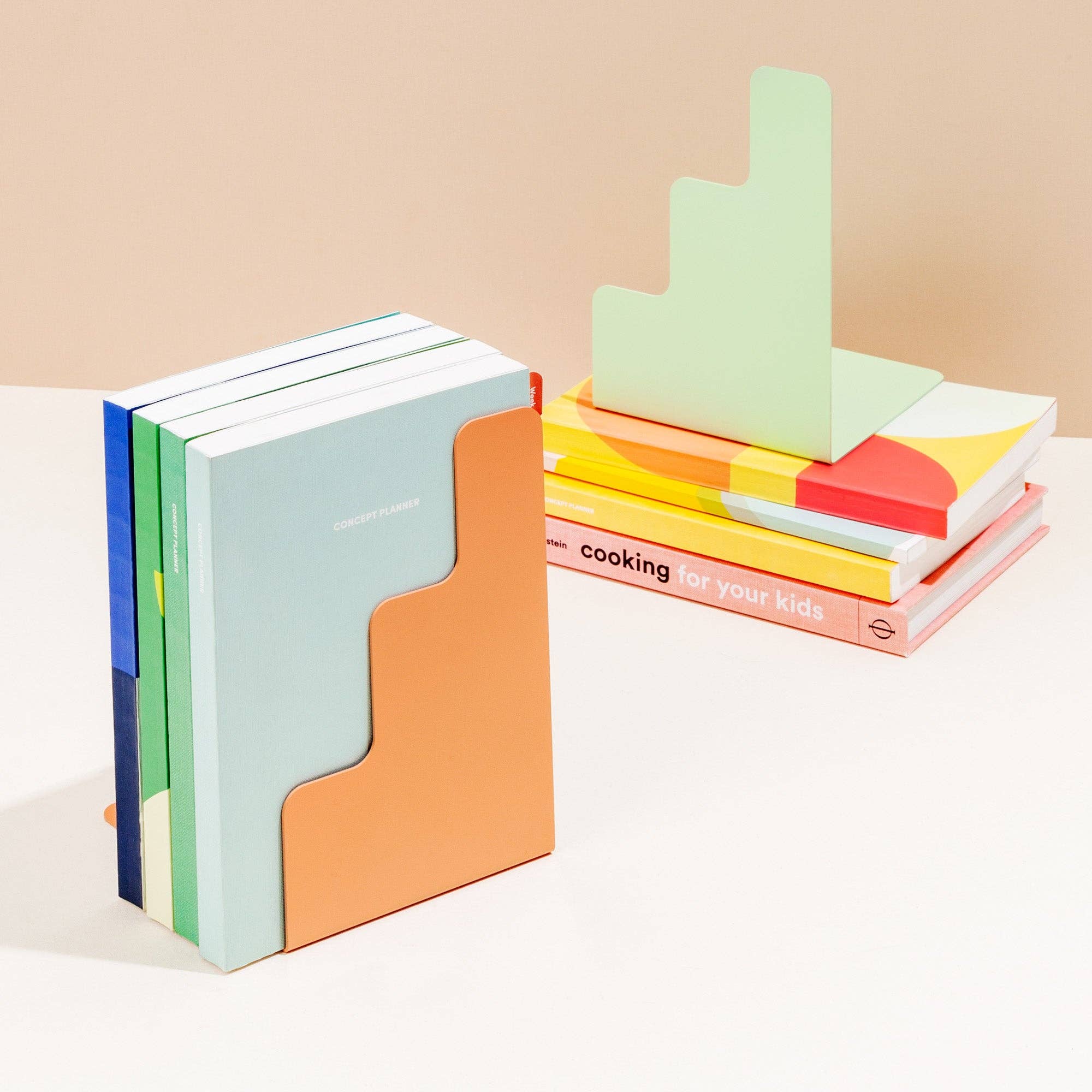 Give your book collection its own stylish staircase with our Step Bookend. Its sturdy metal construction keeps books upright, while the hand-painted colors add fun to any shelf. Mix and match colors. Also goes great with the Form Desk Organizer. * Each sold individually * 4.9" L X 5.3" W x 6.8" H (12.4 x 13.5 x 17.3 cm) * Powder coated metal