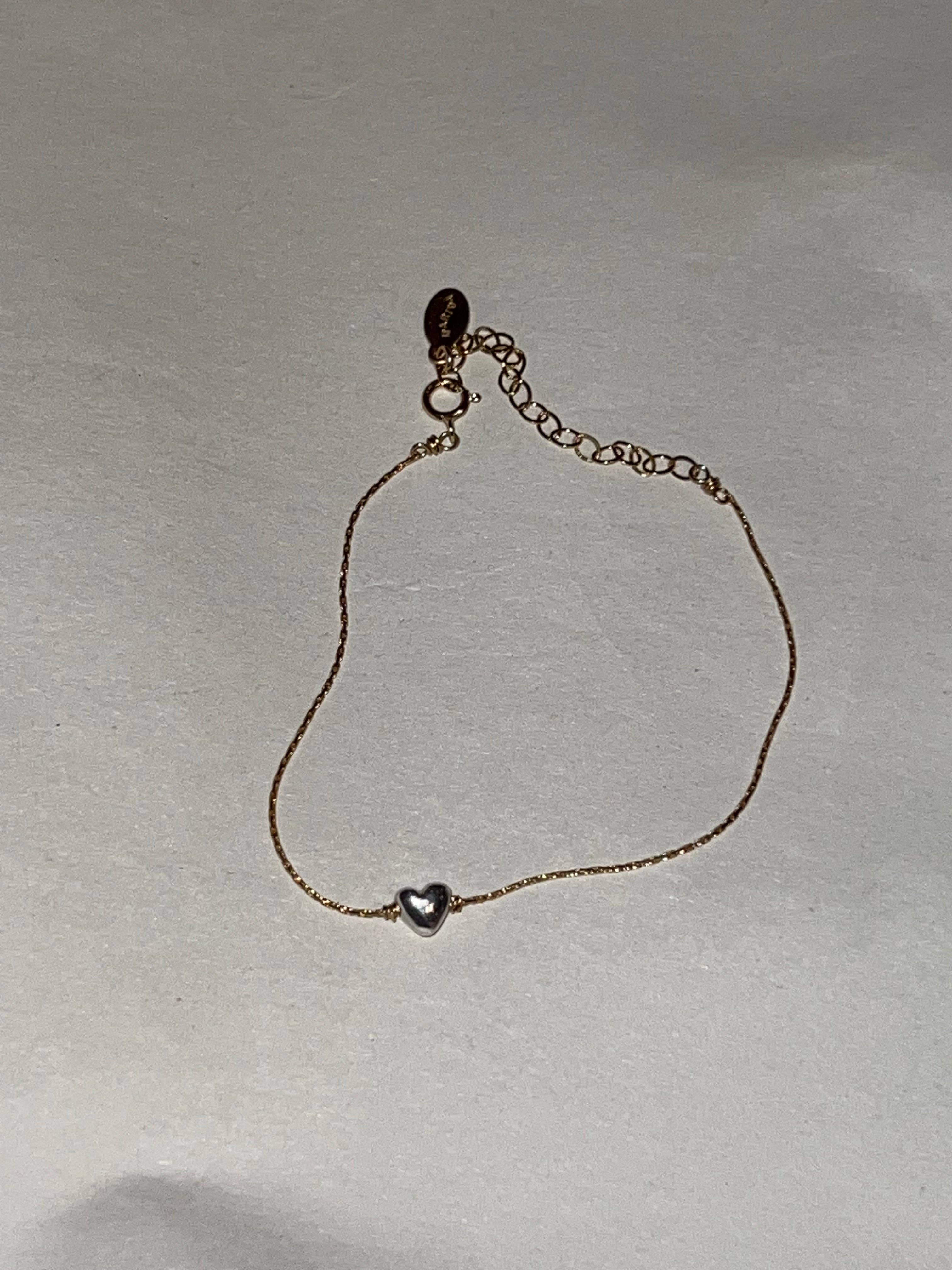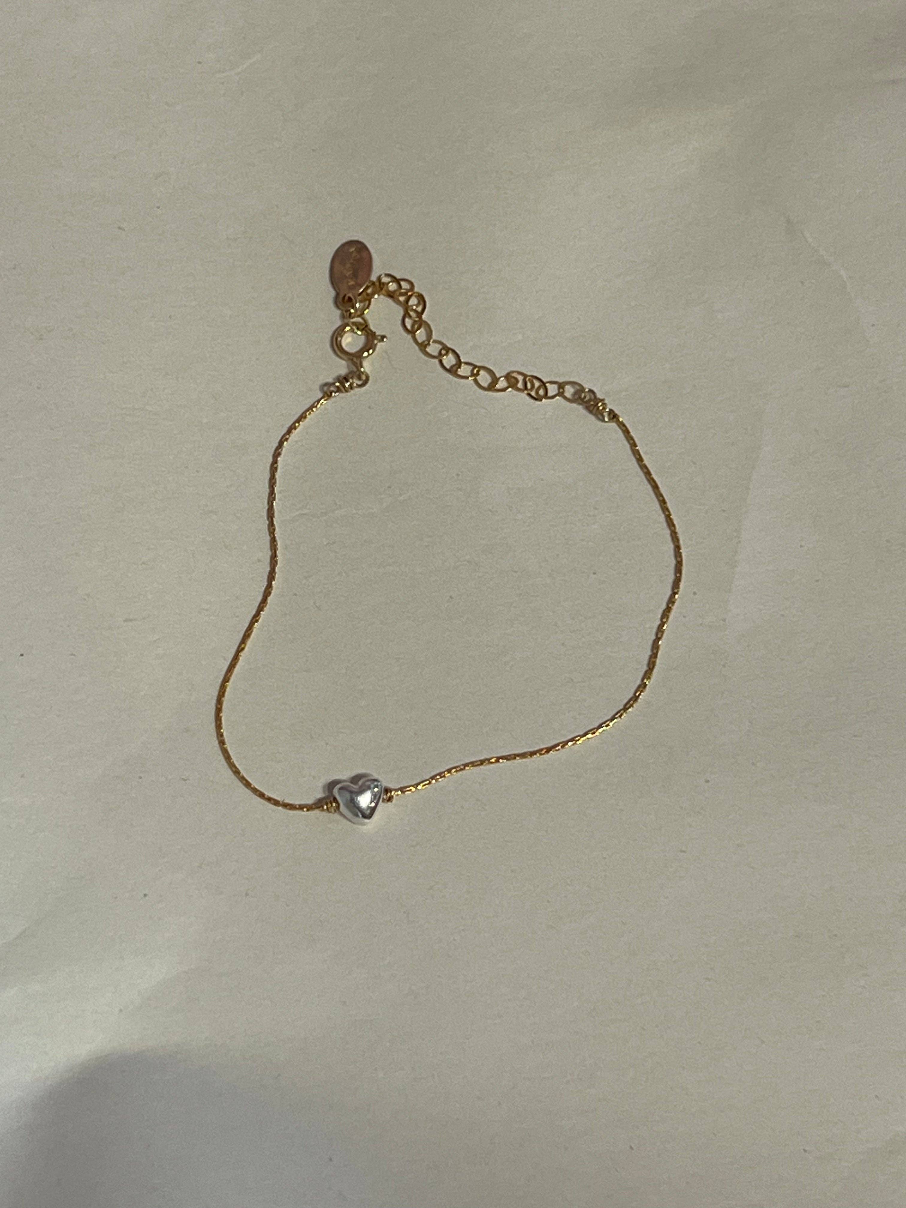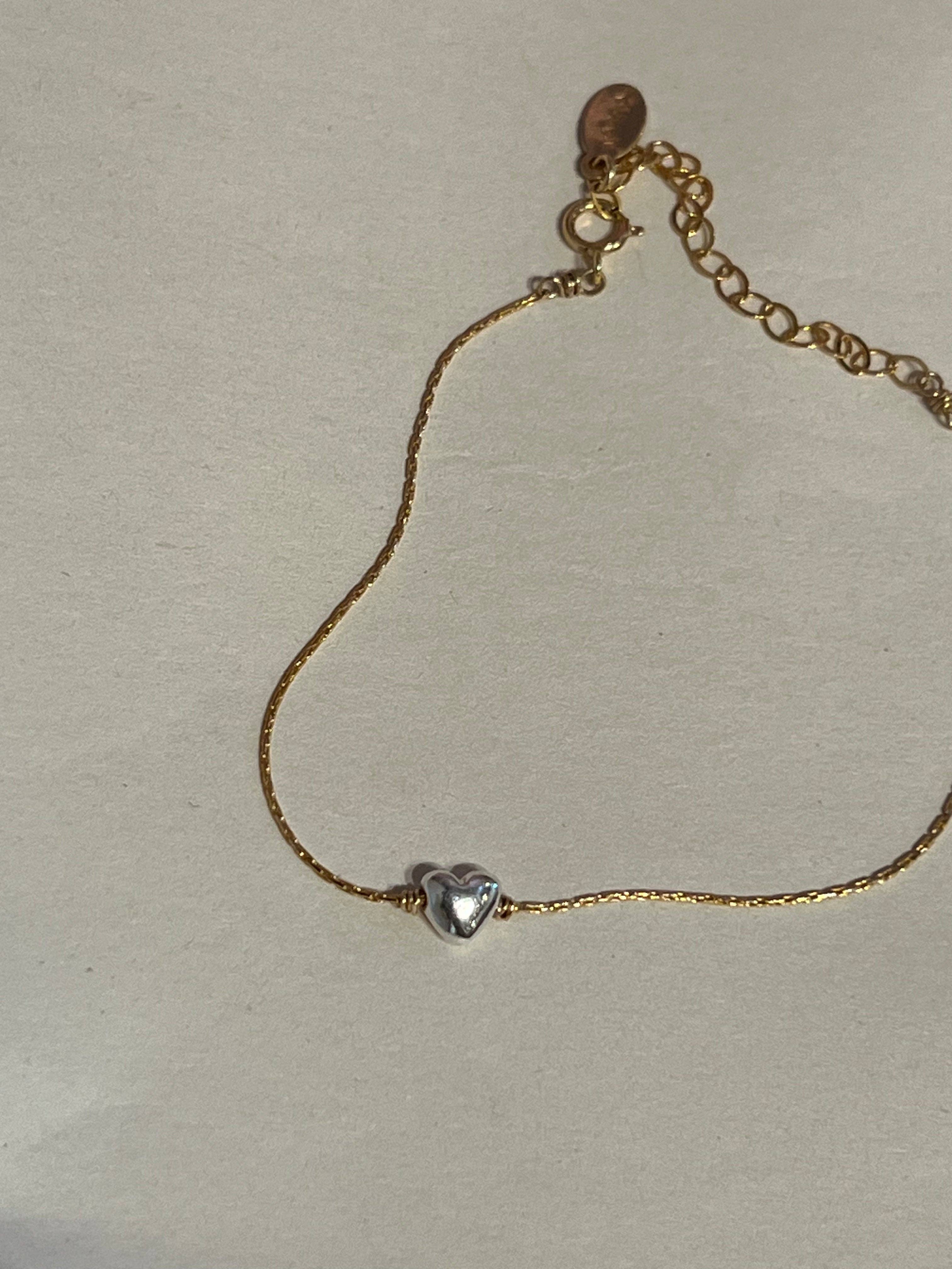 This bracelet features a stelling silver heart in the center wrapped on a snake chain. This is a great piece to stack on to your arm candy or keep it simple with just the bracelet itself.