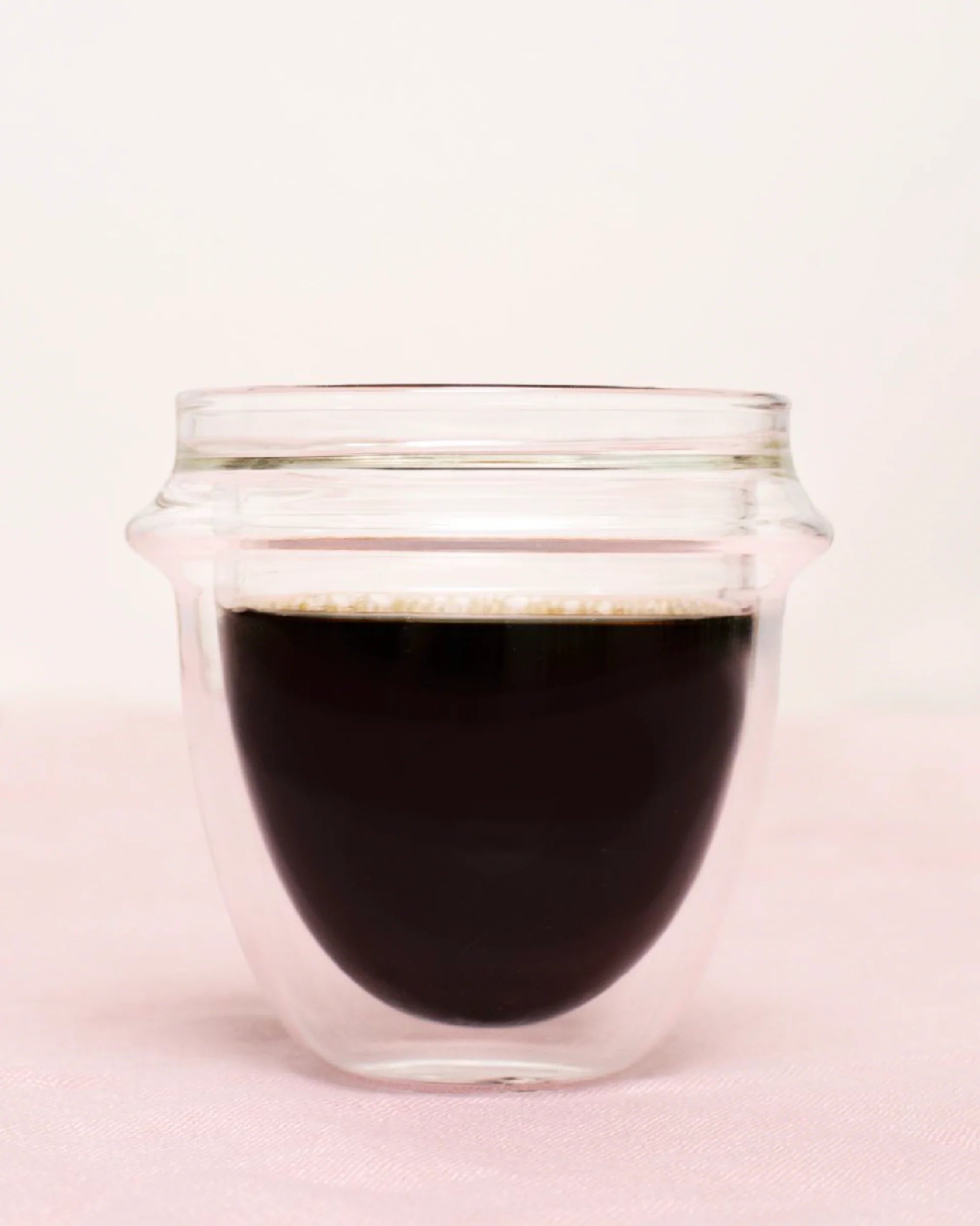 A double-walled insulated glass cup that keeps hot drinks warm and cold drinks cool — without condensation. Hand-blown from durable borosilicate glass with a subtle finger ledge for comfortable everyday use.