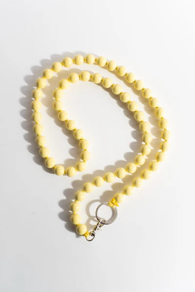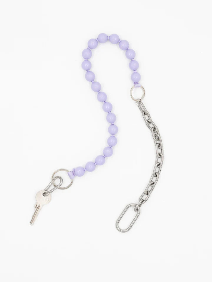 Chain with 16mm wooden beads, steel chain, metal ring, and two steel carabiners.