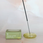 Simple elegance– our Bubble Incense Holders are the perfect accompaniment to our best-selling incense. Handblown in softly colored transparent or milk glass, and packaged in an understated gift box. • 2.5" x 2.5" • Glass Incense Holder + Incense Burner