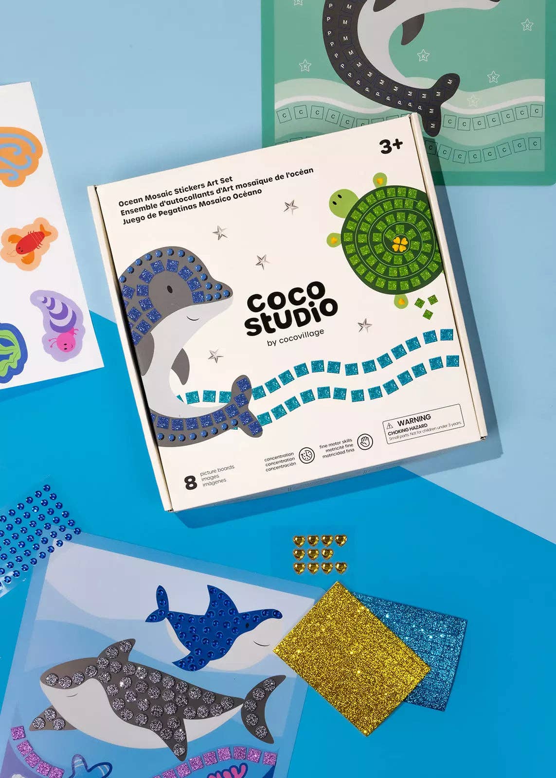 This engaging art set lets kids bring adorable sea creatures to life. From dolphins to seahorses, young artists will enjoy decorating 8 colorful picture boards using easy-to-peel mosaic and diamond stickers. Perfect for fostering creativity, improving fine motor skills, and offering hours of screen-free fun, this kit makes a great gift for any young ocean explorer! Content : • 8 picture board • 2 sticker sheets • 8 colors of mosaic stickers • 5 types of diamond stickers Developmental Bene