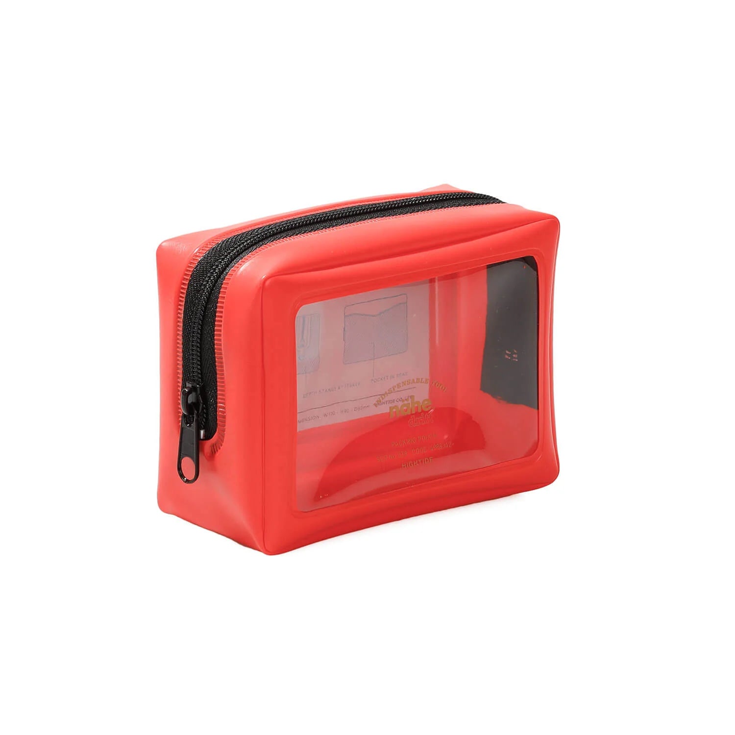 A zippered pouch made of PVC with a transparent front by Hightide. Comes with a slit pocket on the inside and back.