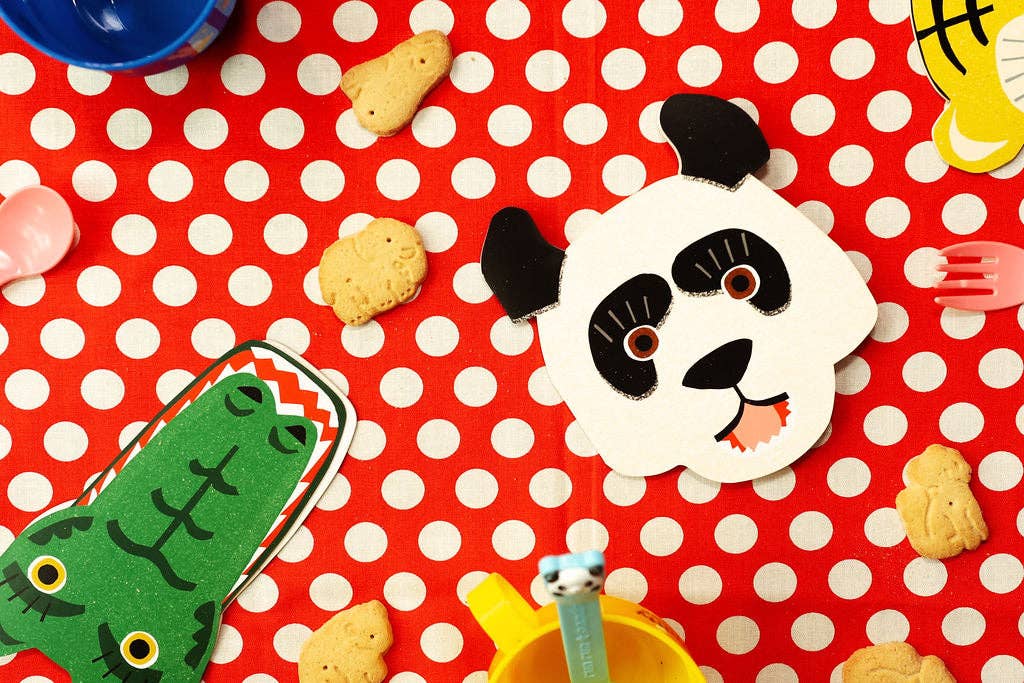 The Panda card is sweet and gentle, perfect for sending warm wishes or inviting friends to a cozy celebration. Part of the Wild Bunch Collection - a playful trio of animal cards, perfect for party invites, cheerful notes, or anyone who loves a little fun. A6 - 6.25x4.5" die cut folded card, printed in the USA on sustainably produced 18pt coated card stock. Each folded card is blank inside, comes with a brown kraft recycled envelope and is wrapped in a cello bag.  Made by French hands in the USA!